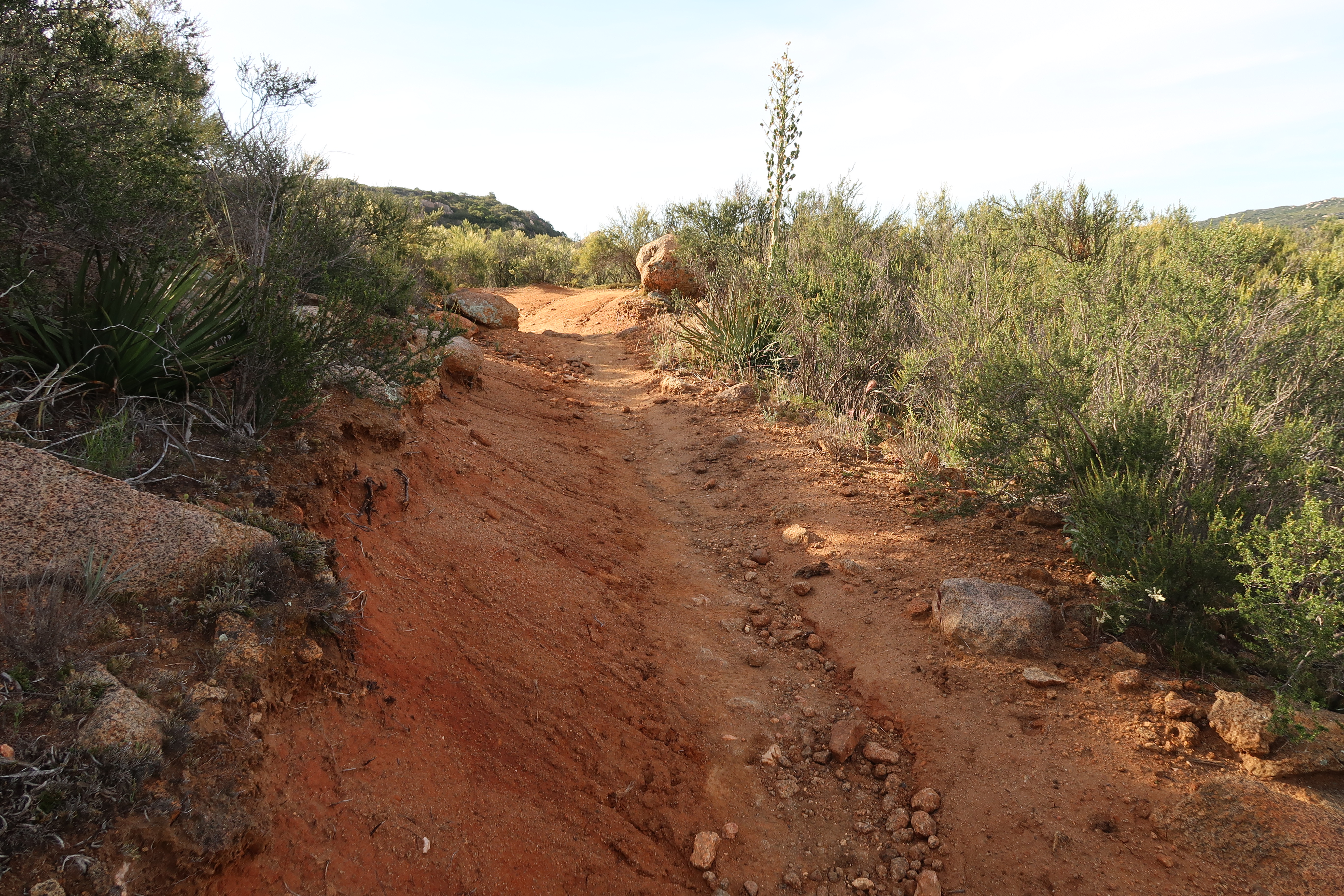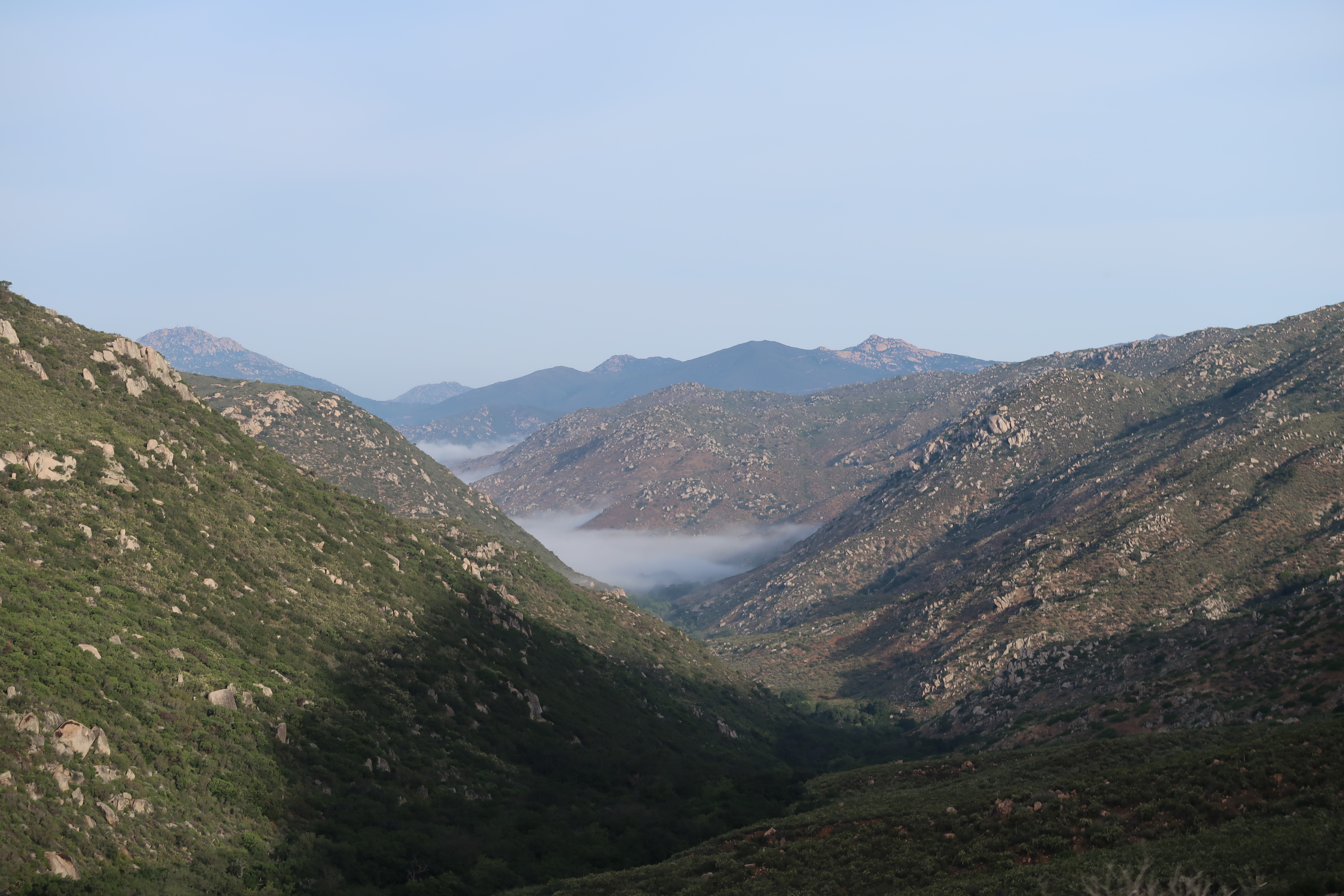 Die Sonne kam gegen 6 so langsam raus und ich bin mit drei älteren Herrschaften losgelaufen. Man bedenke: der eine Typ mit der Glatze ist 55 Jahre alt und versucht den PCT zu gehen. Nicht schlecht! (Später muss ich jedoch herausfinden, dass zwei von denen zumindest für kurze Zeit aufgeben müssen und erst später zum Trail kommen.) Wir erklimmen große Anstiege und gehen nach etwa drei Stunden wieder herunter, in Richtung Lake Morena.