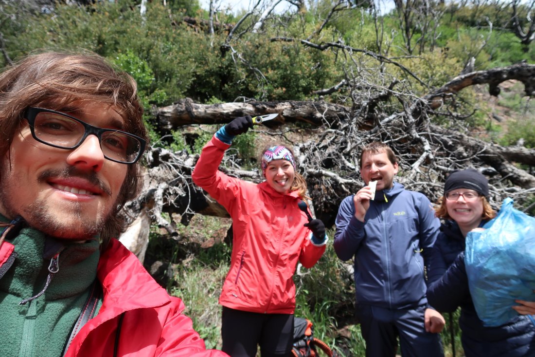 Heute ging es erst gegen 10 Uhr los. Wir entschieden uns, aufgrund des für diese Gegend zu dieser Jahreszeit sehr ungewöhnlichen Wetters, erst später loszugehen. Früh hatte es sogar geschneit. Und das in Südkalifornien. Jedenfalls musste ich mir erst wärmere Kleidung (Handschuhe, Jacke und co) kaufen. Um meine Füße vor erneuter Feuchtigkeit zu schützen, wickelte ich diese in Plastiktüten ein (-> die Tüten sind am Ende des Tages jedoch gerissen. Vielleicht einfach zu dünn.) Für meinen Rucksack habe ich eine große Mülltüte genommen.