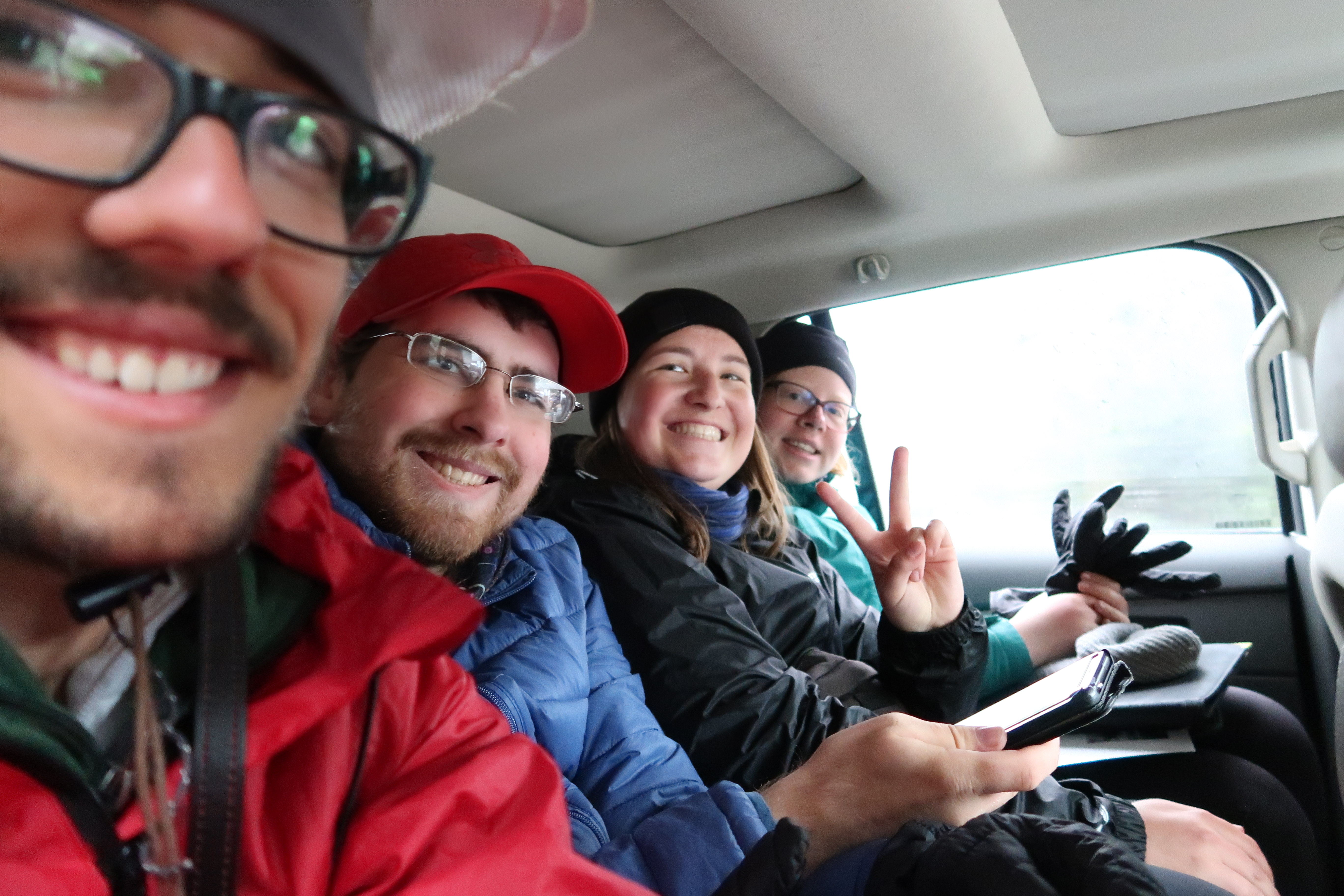 Irgendwann hat uns dann doch noch ein Auto gesehen. Das alte Ehepaar erzählte uns, dass sie sehr selten hier langfahren, aber immer Wanderer wie uns mitnehmen zum Trail. Aufgrund der Eiseskälte waren wir mehr als froh, dass sie uns gesehen haben. Einziges Problem: 3 Sitze hinten frei. Lösung: