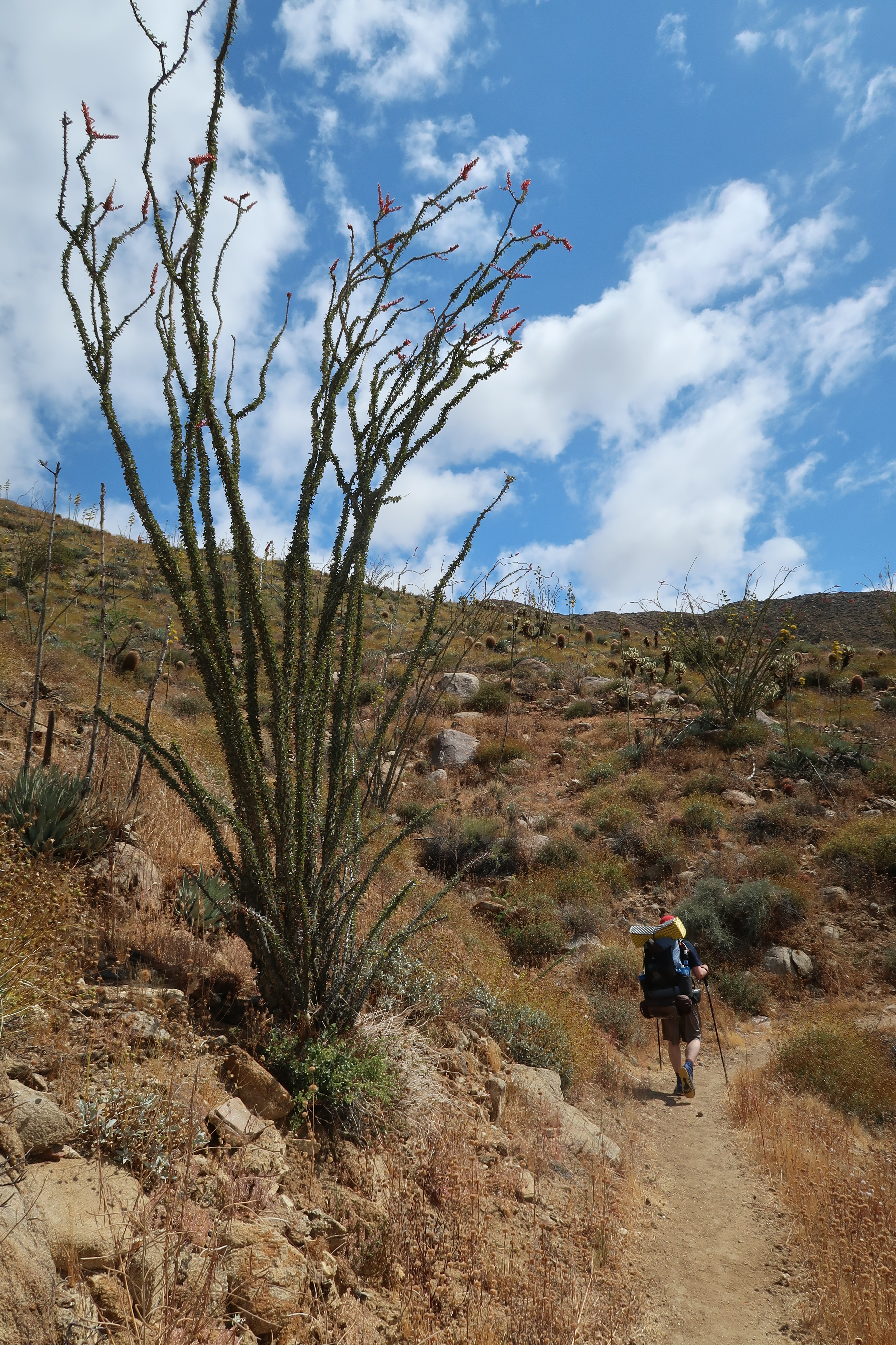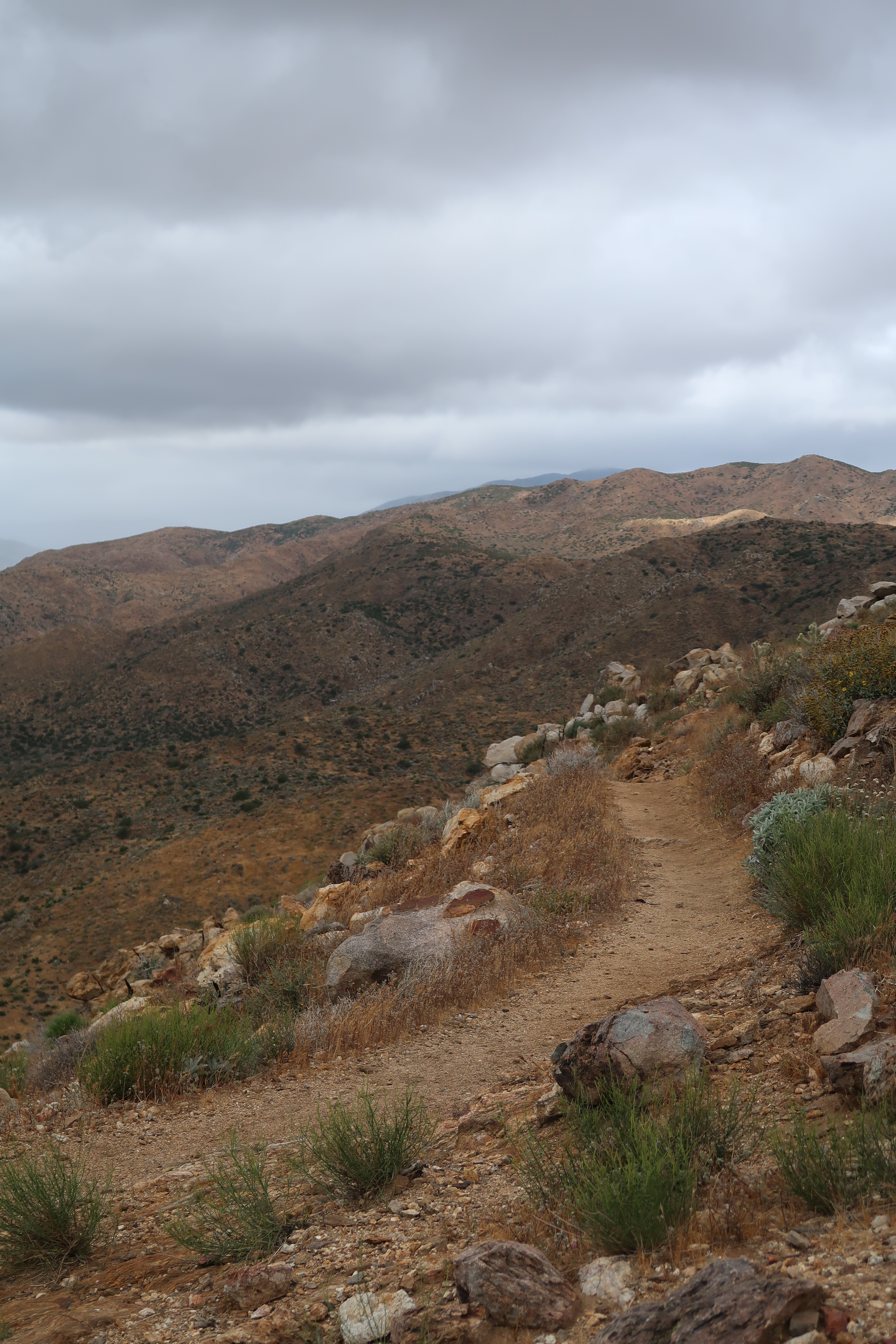 Das Wetter zum Laufen war heute mehr als ideal. Nicht zu heiß aber auch nicht zu kalt. Regen gab es so gut wie keinen (nur ein Hauch von Nieselregen). Das kam uns total gelegen. Zwei von uns (mich eingeschlossen) haben nämlich noch ein Paket in Warner Springs (der nächsten Ortschaft) von San Diego aus abgeschickt. Das ist Teil des Versorgungsplans. Für mich als pflanzenbasierter Esser besonders wichtig, da es in manchen Orten (wie Warner Springs) kaum Einkaufsmöglichkeiten gibt. Aber um das Paket noch zu erwischen, müssen wir noch Samstagfrüh da ankommen, da die Abholstation sonst zu macht. Das würde bedeuten, man müsste bis Montagmorgen warten. Nicht gut. Also 25-28 Kilometer täglich durch die Berge und dann schaffen wir das auch.