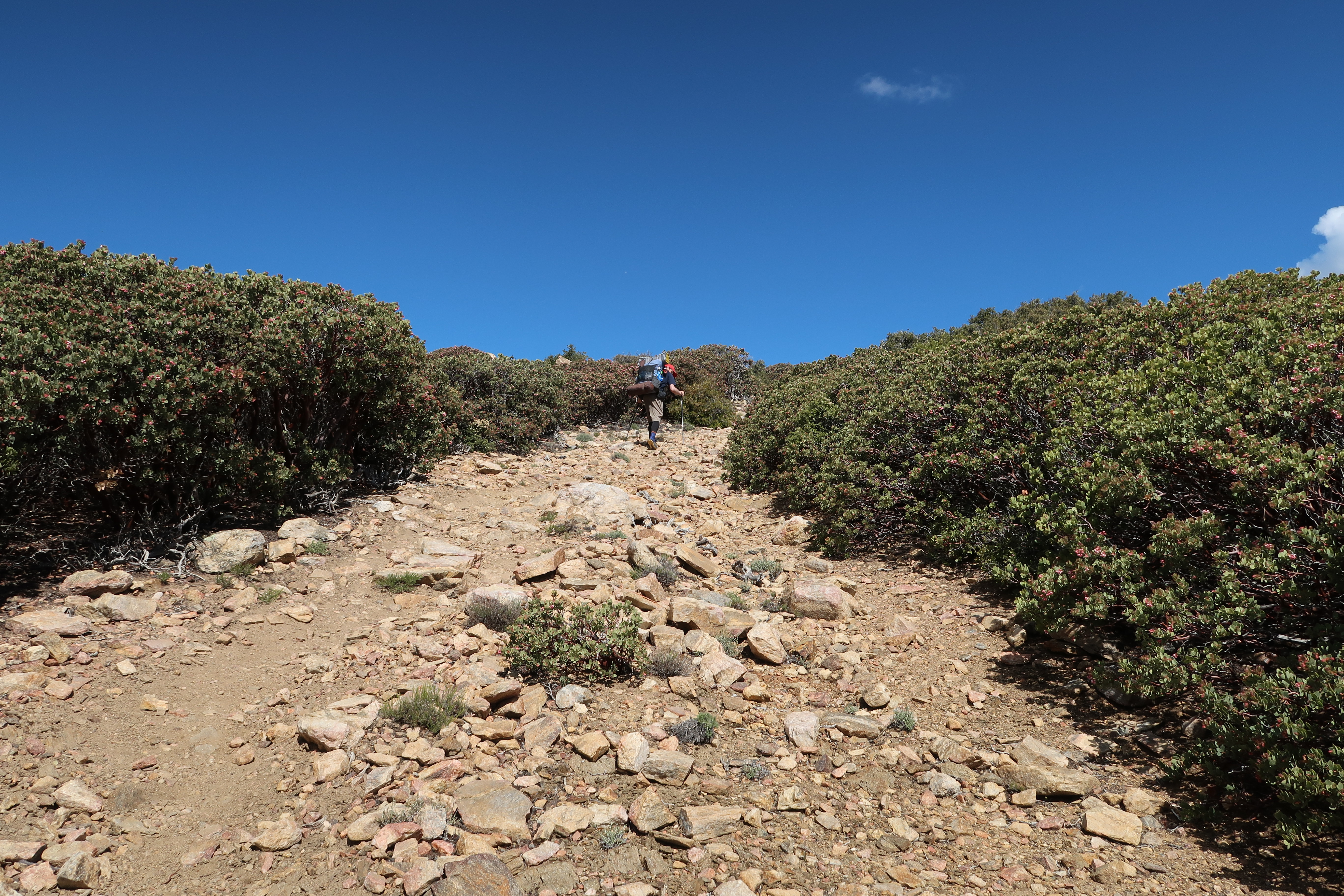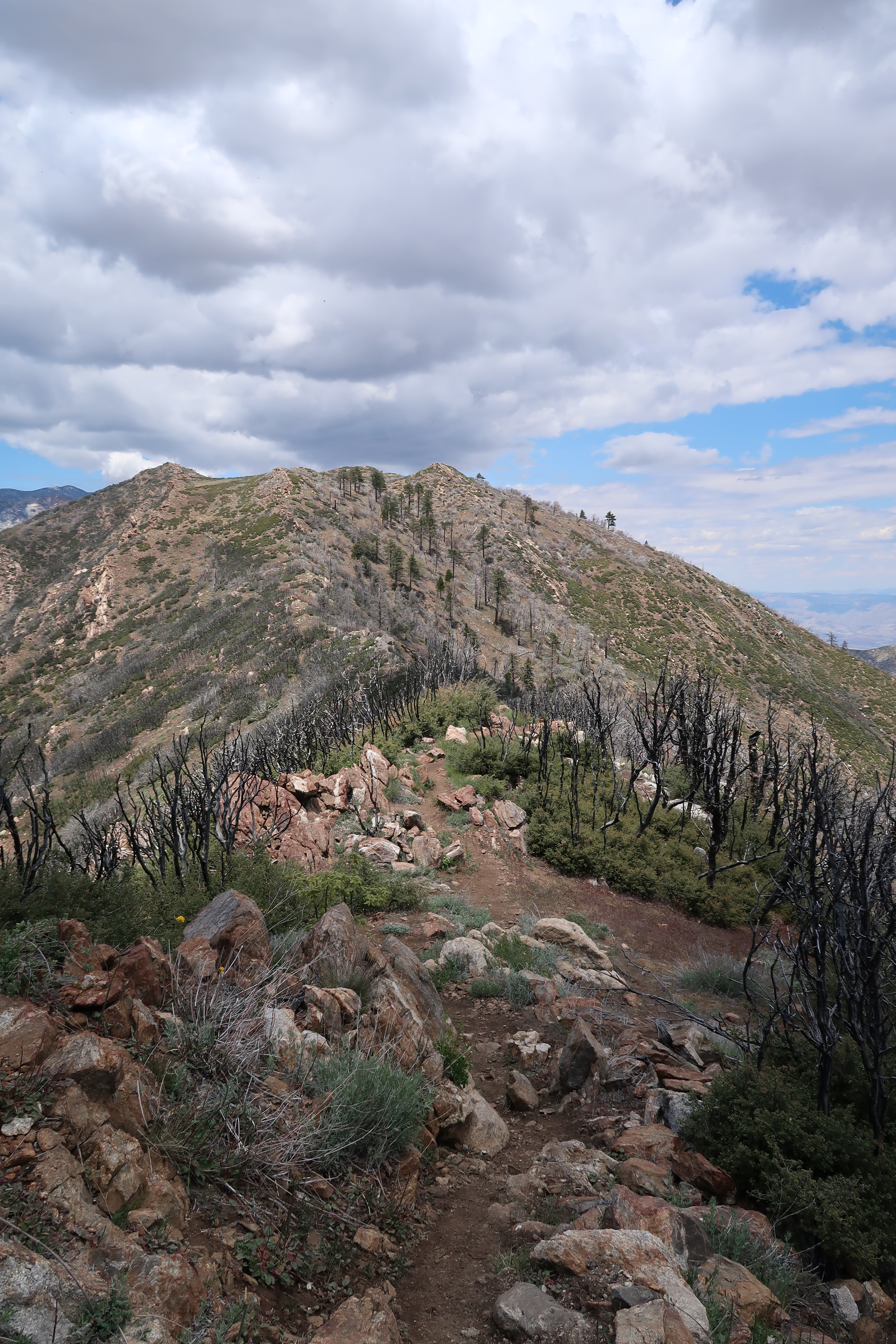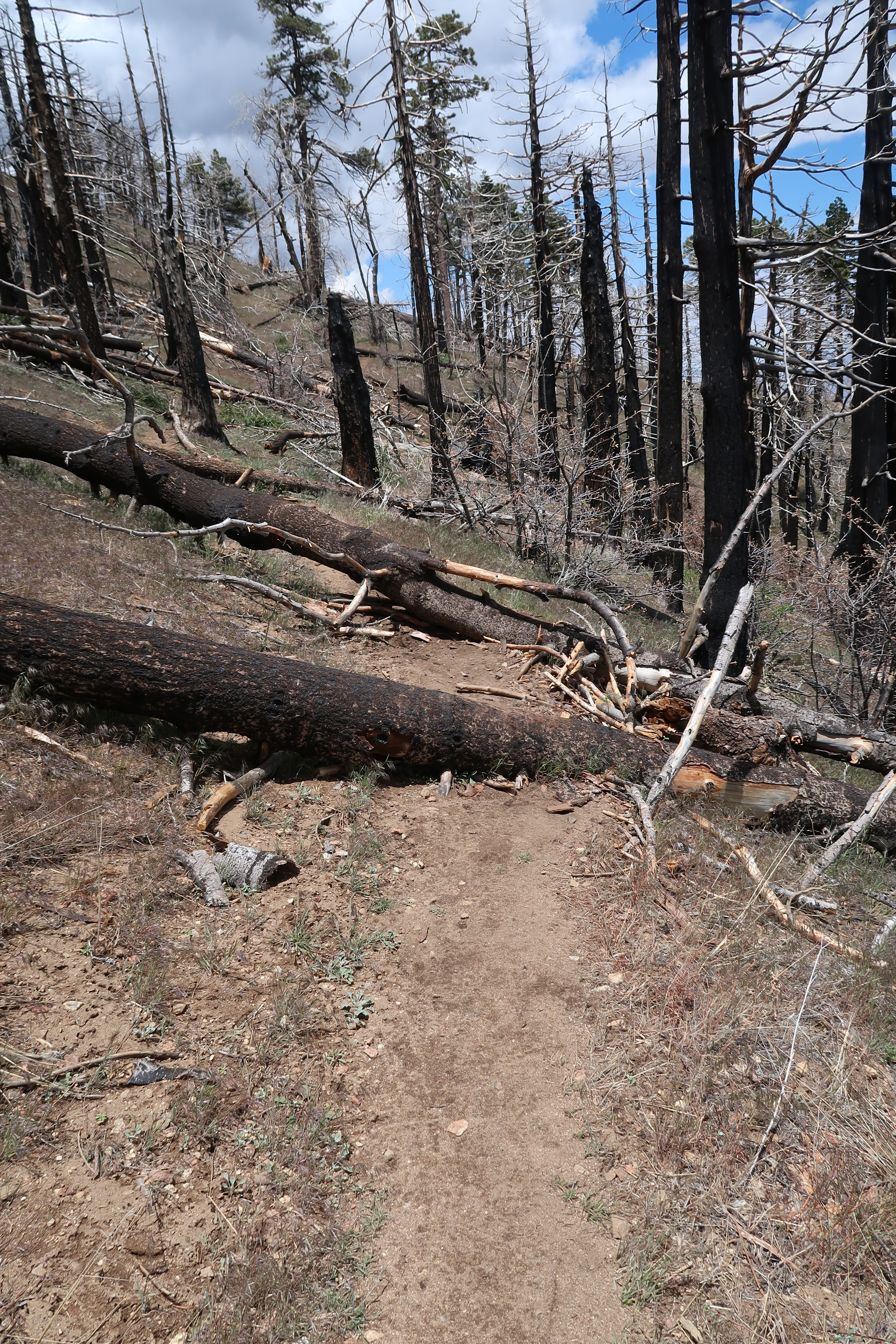 Nach den letzten richtig steilen zwei Meilen Anstieg sah ich mich plötzlich einem Schlachtfeld aus toten Bäumen gegenüberstehen, die meinen Weg blockierten und mein Vorankommen erschwerten.