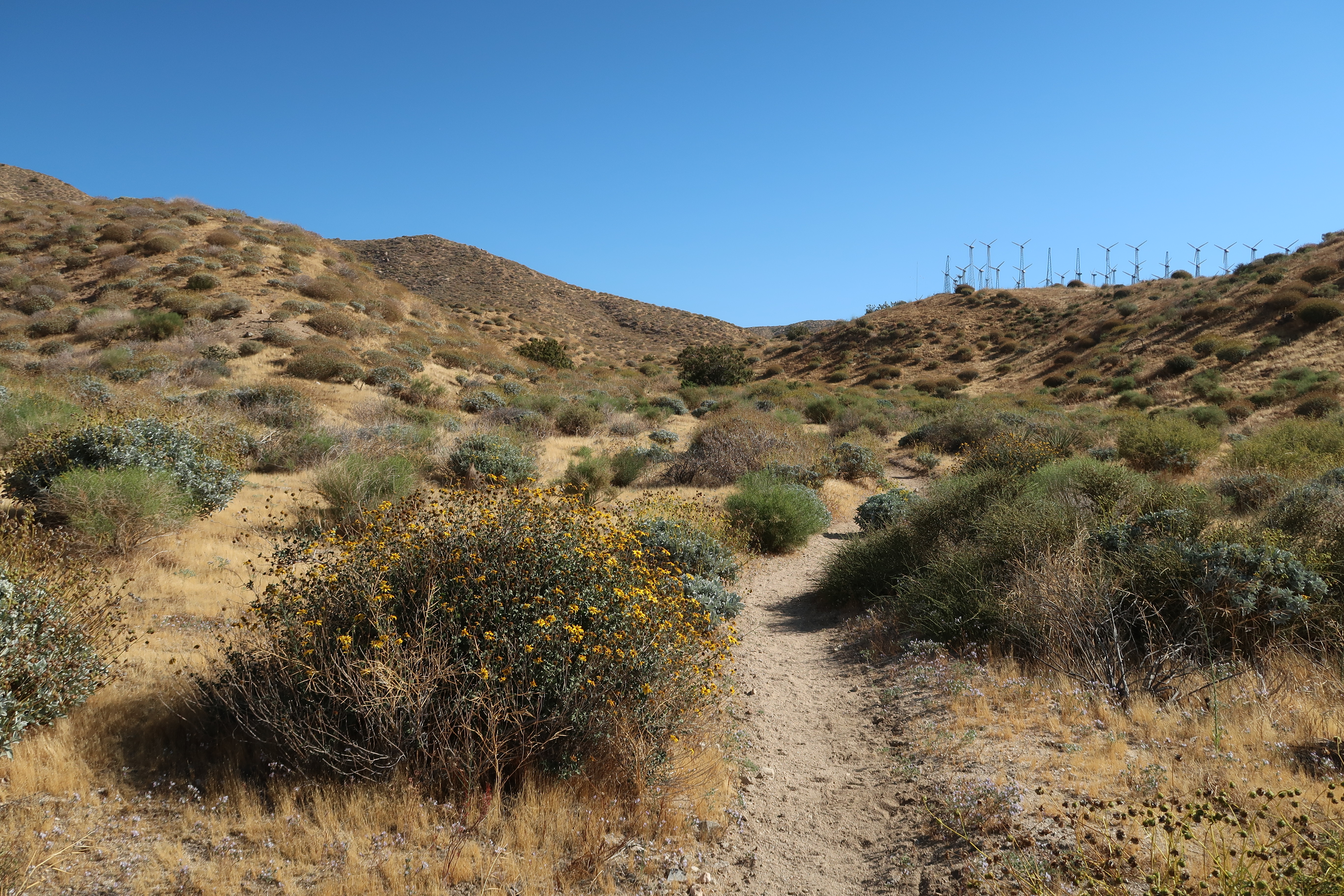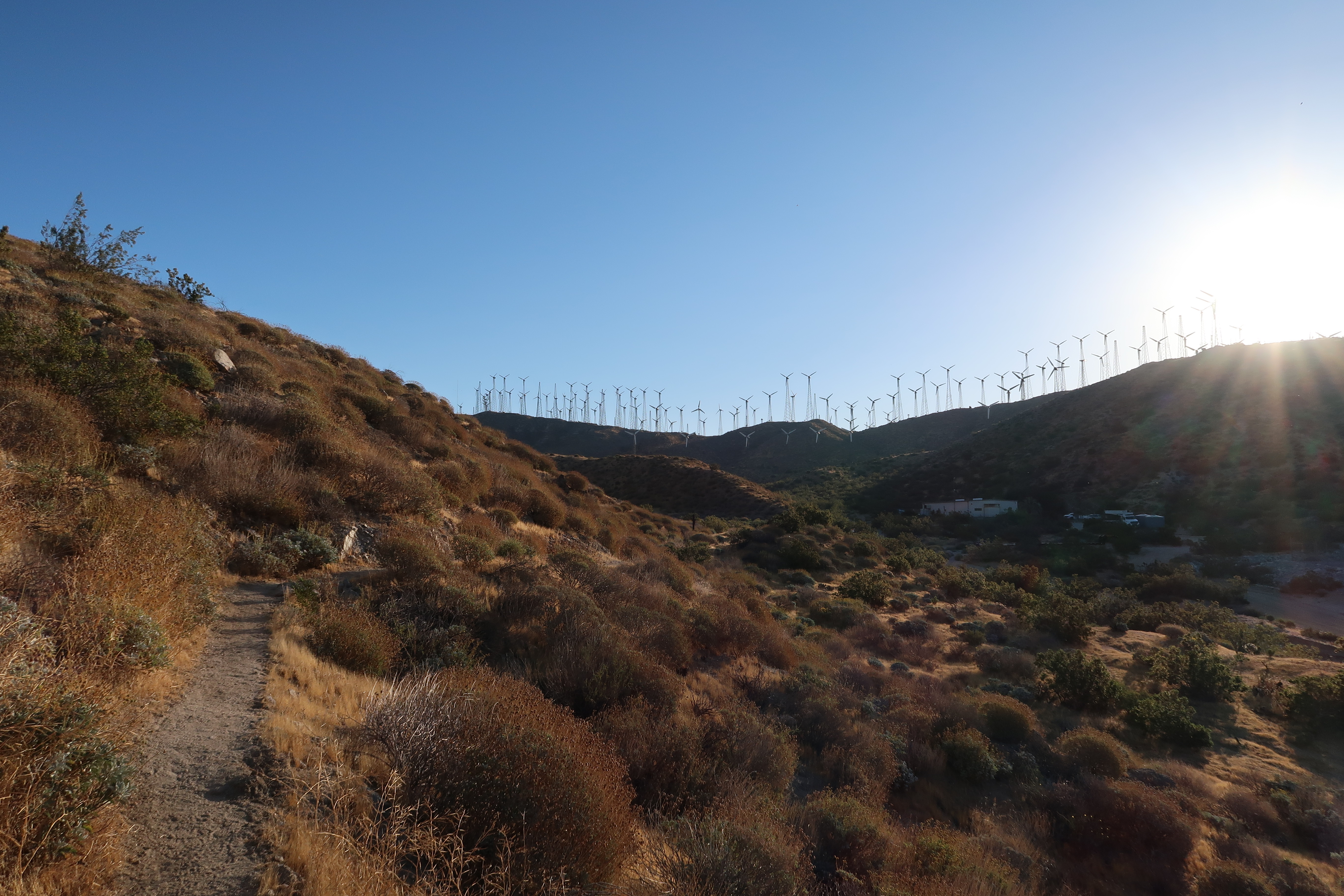 Und dann erreichte ich die Mesa Wind Farm. Da gab es alles, was das Hikerherz sich nur wünschen konnte. WLAN, Dusche, WC, Wasser, Snacks, Steckdosen und so weiter. Kurz darauf kamen auch schon Jake, Apex und Arrow. Red Jesus ist uns übrigens meilenweit voraus, er verließ uns bereits gestern Mittag. Ich und Arrow gingen dann zusammen weiter. Und dann: Hitze.
