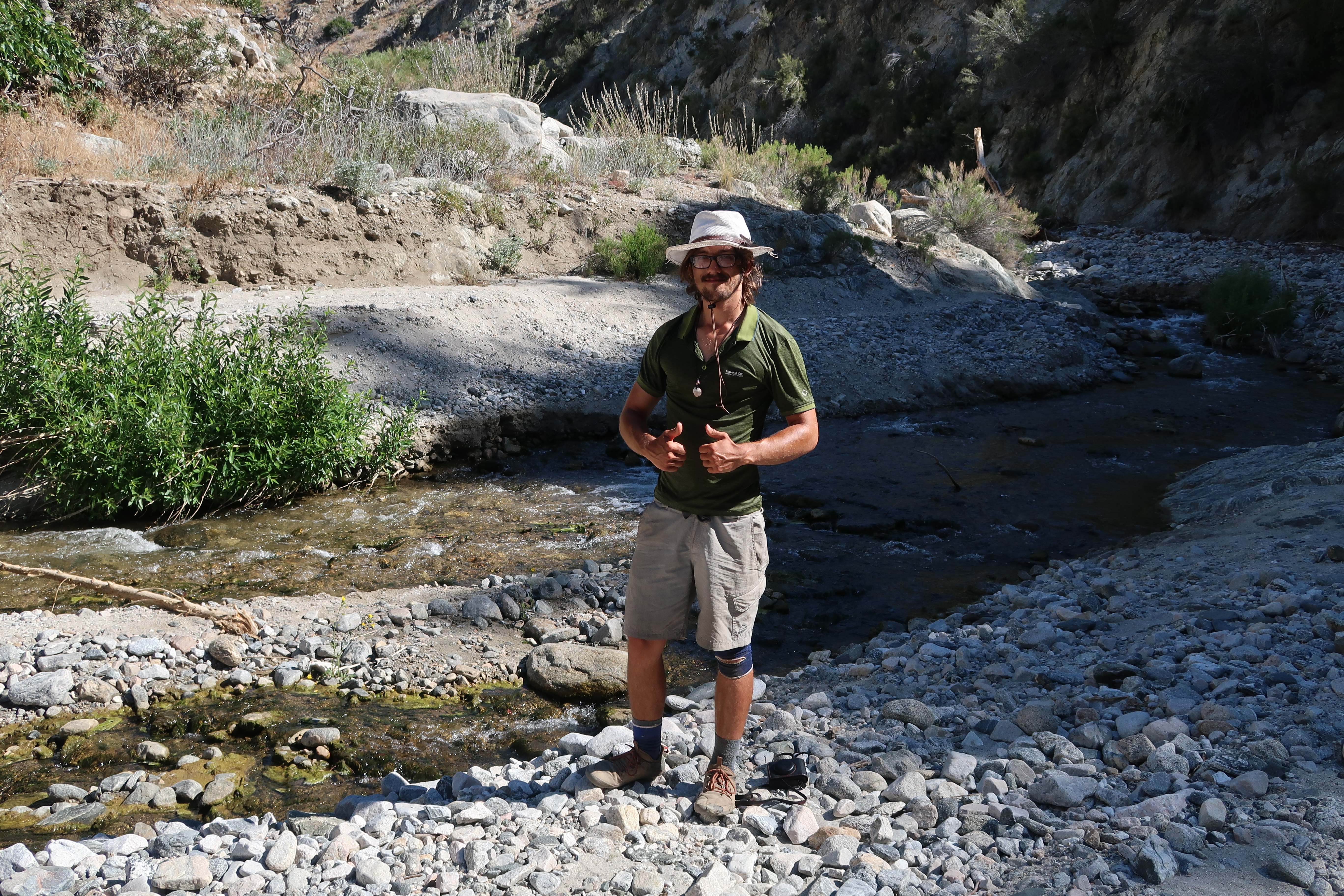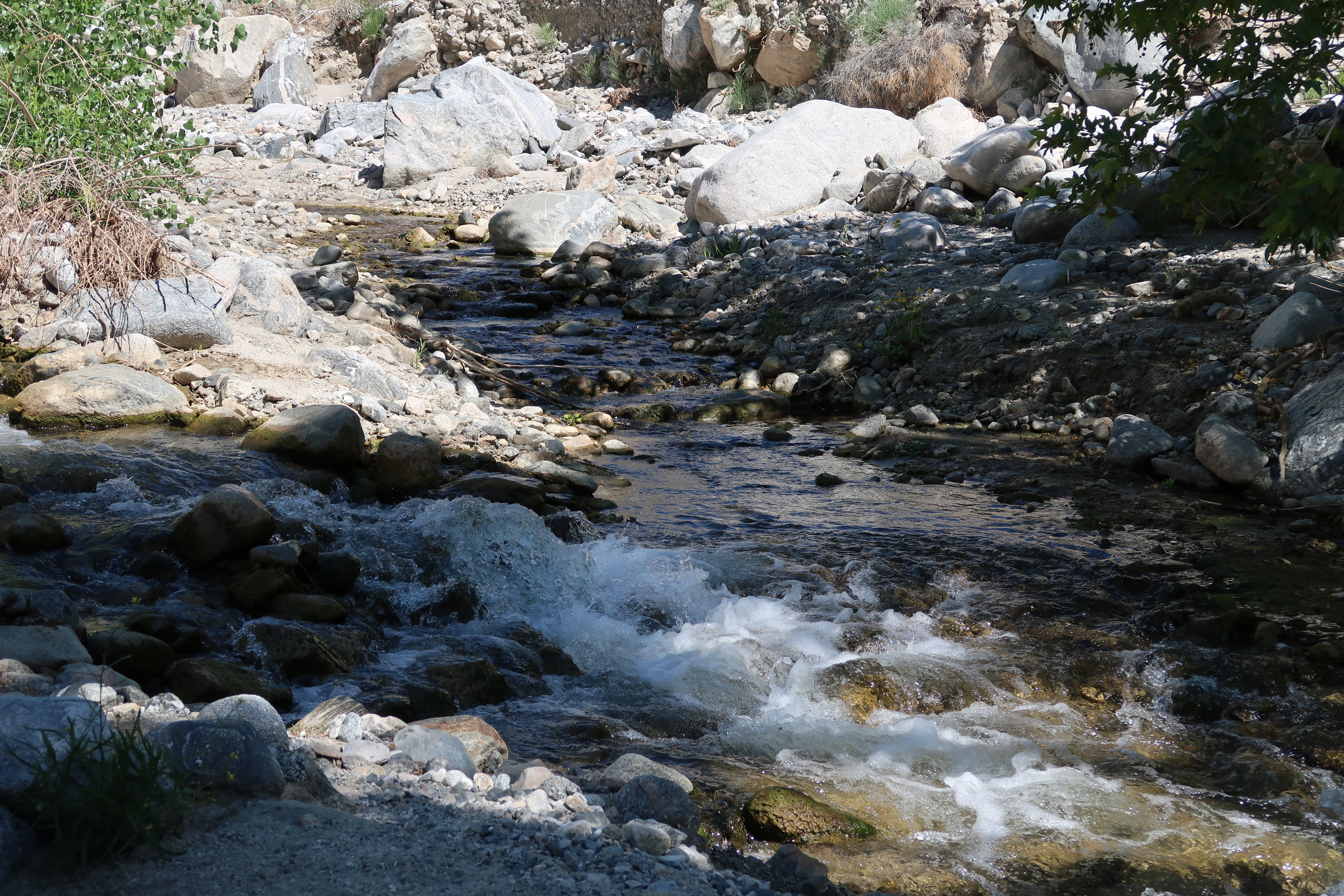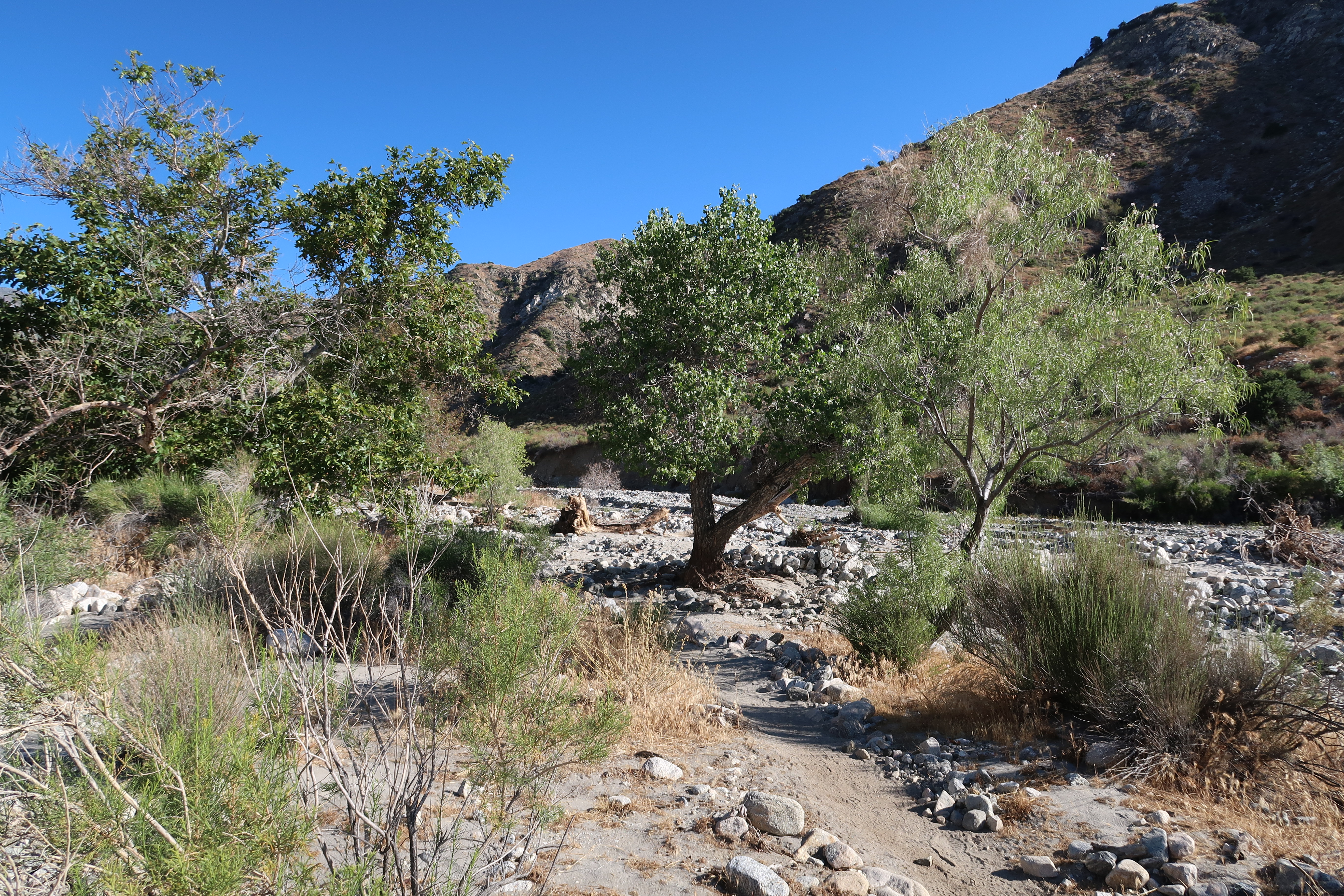 Irgendwann hatte ich mich dann so arg verlaufen, dass ich es nicht schaffte, den Trail ohne Weiteres wiederzufinden. Weder oben auf der rechten, noch drüben auf der linken Böschung war er zu finden. Und so konnte ich nur Eines tun: dem Fluss folgen. Ich wusste, dass er mich früher oder später wieder zum PCT bringen würde. Ich stolperte ungefähr eine Dreiviertelstunde durch das steinige Flussbett. Unterwegs huschte unter mir eine Schlange vorbei, was mir so einen großen Schrecken einjagte, dass ich dachte, mein Herz bleibt gleich stehen. Doch dann fand ich den Trail wieder und war mehr als glücklich. Ich würde also weiterleben. Danke dir, Naturgott und danke meinem Glücksbringer 🙂
