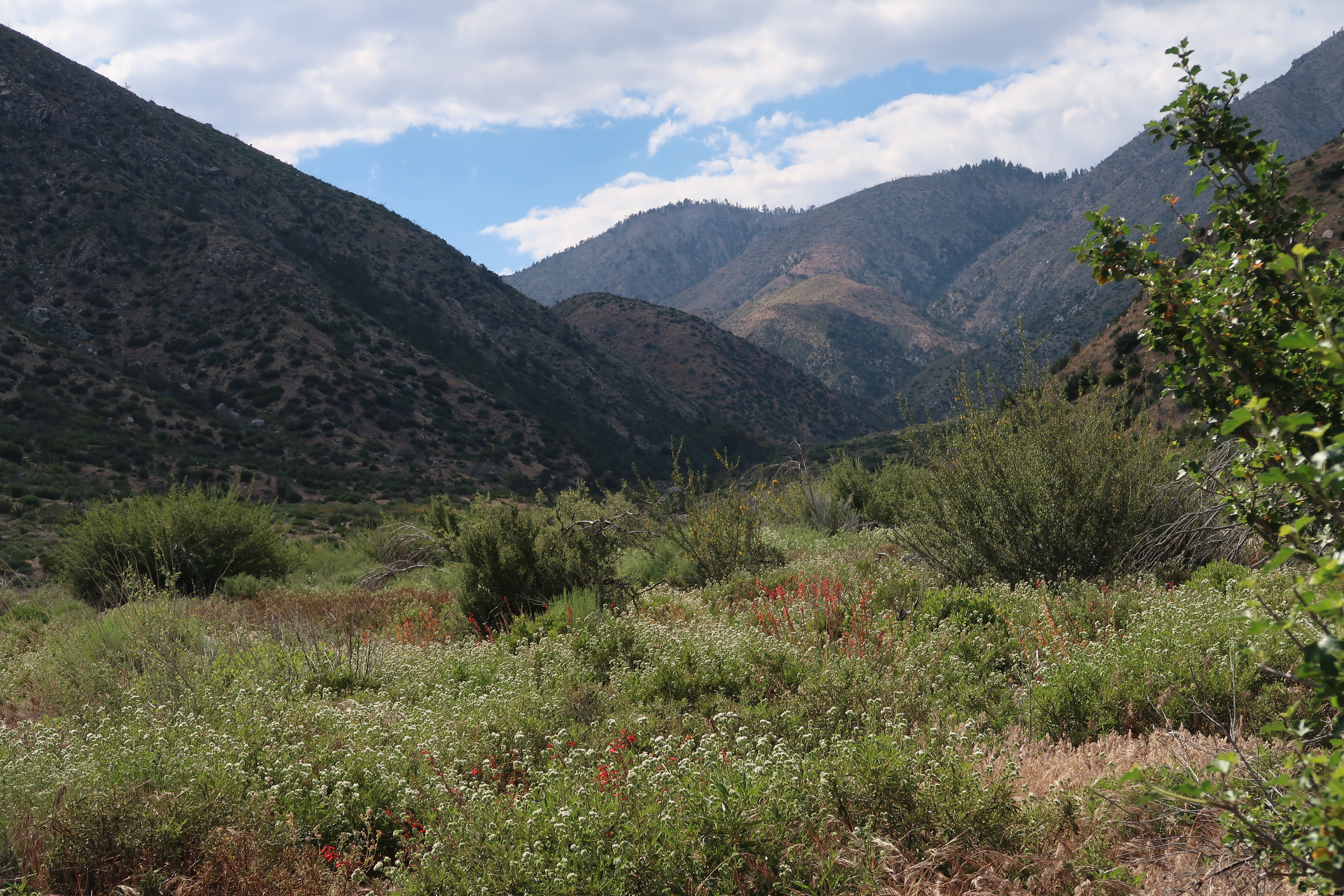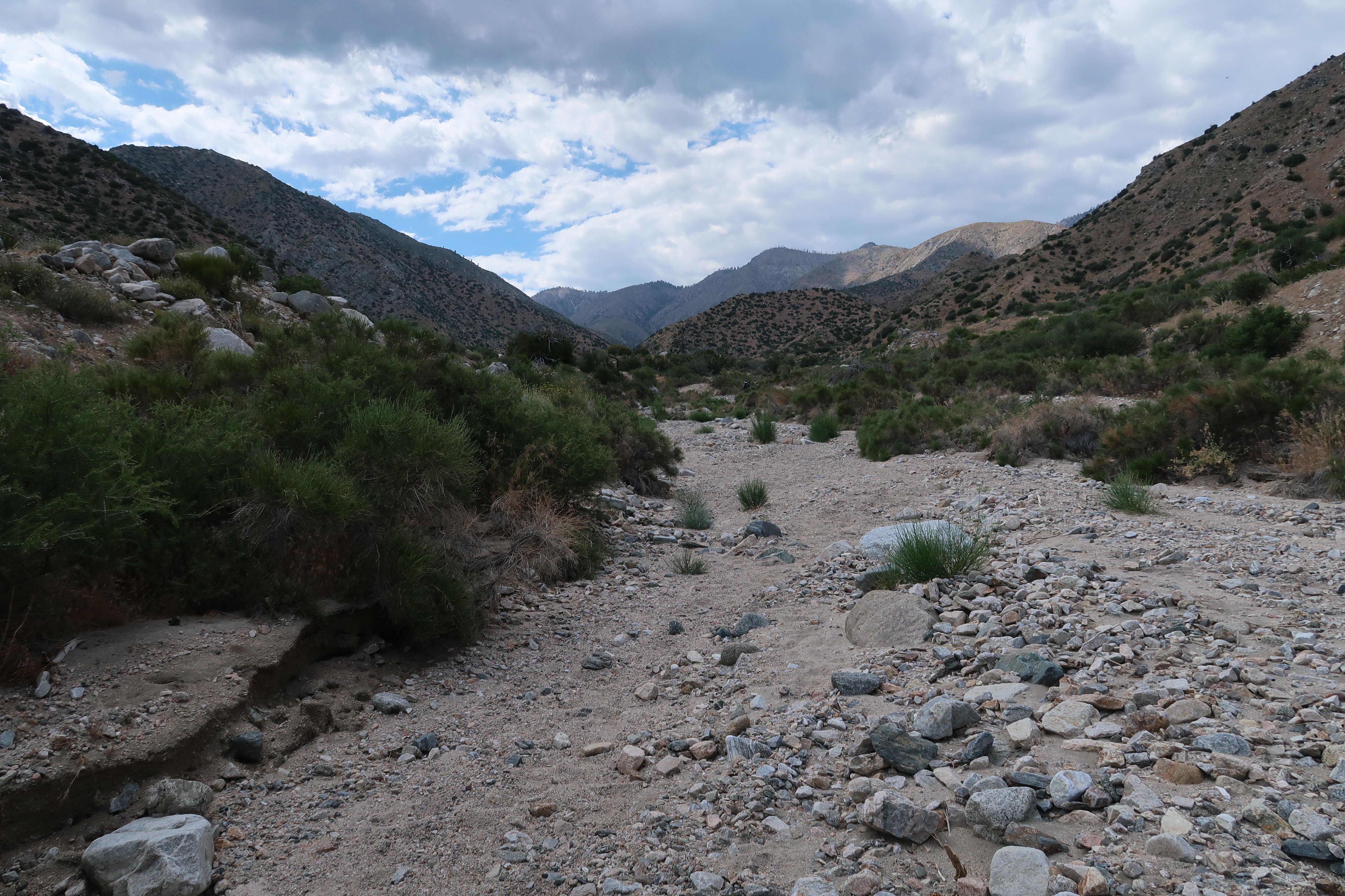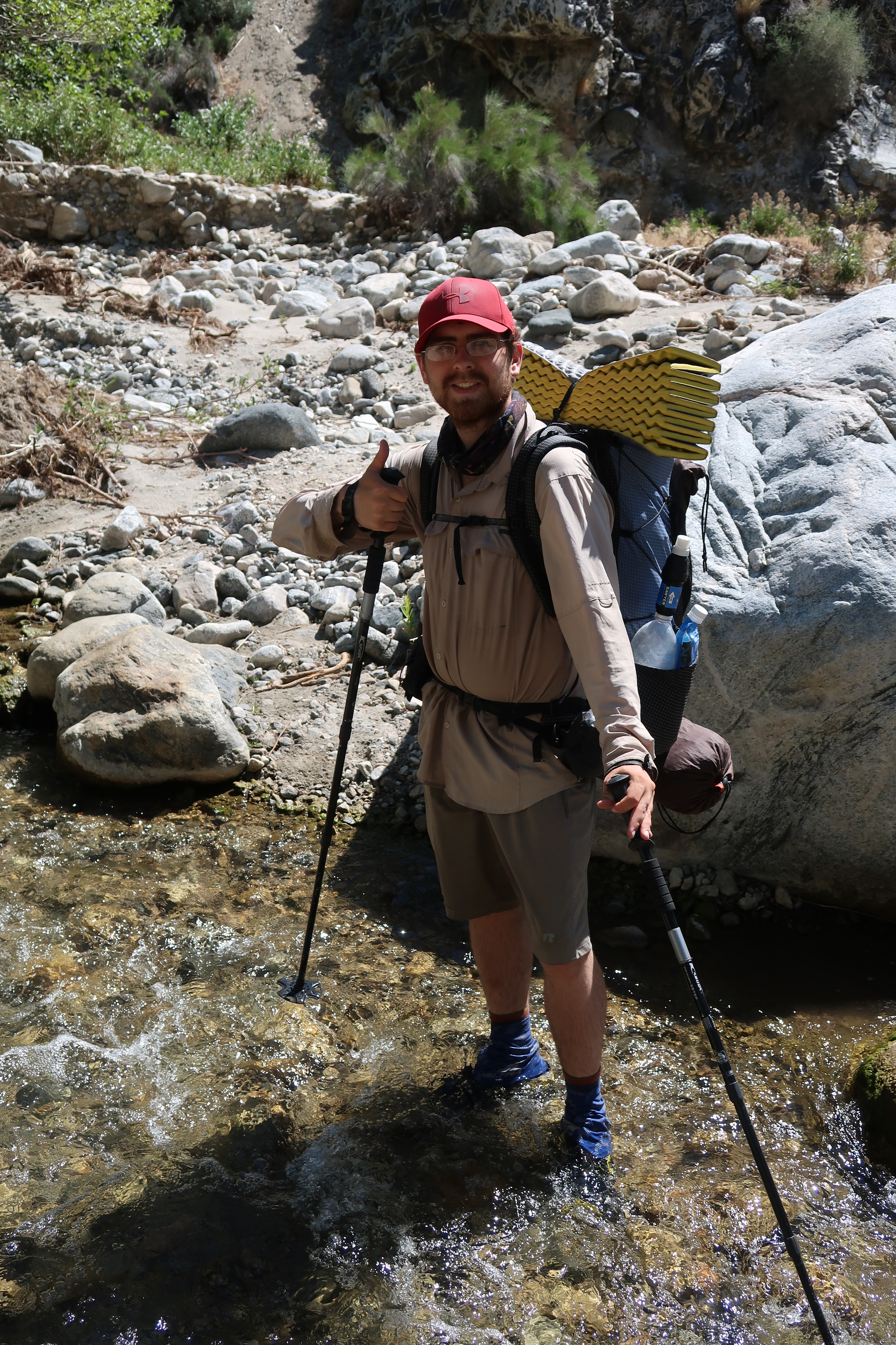 Und plötzlich finde ich mich in einem Tal innerhalb der Berglandschaft wieder. Wir würden für die nächsten zehn Meilen einem Fluss folgen, der sich hoch in die Berge schlängelt. Es gab mehr Schatten und das ständig verfügbare Wasser machte uns die Sache einfacher.