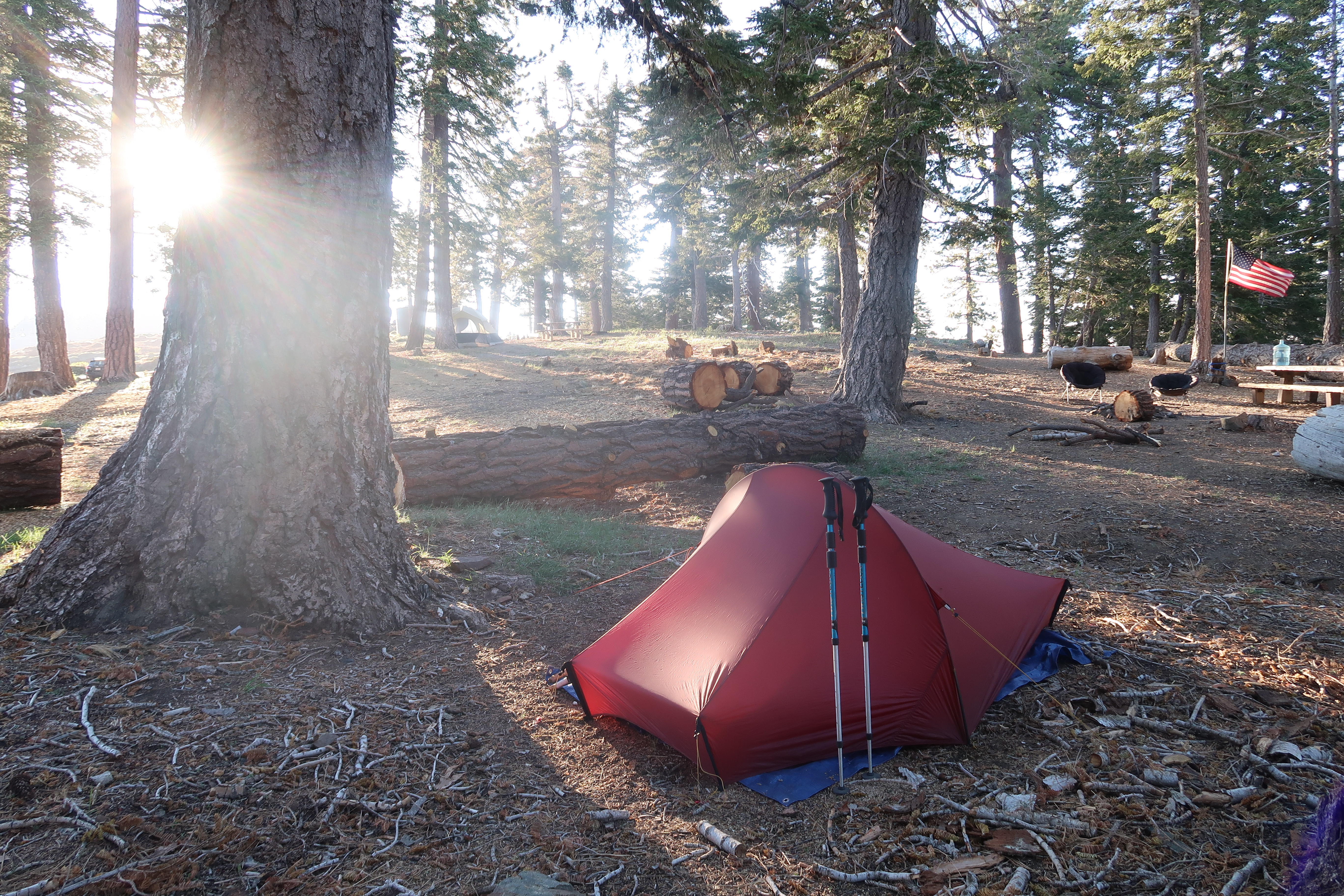 Kurz vor dem Ende der heutigen Reise kam nochmal ein richtig steiler Abschnitt, der mir die Luft wegbleiben ließ. Ich keuchte und stöhnte. Doch letztendlich erreichte ich Guffy Camp Ground, einen großen Zeltplatz mit Aussichten, von denen man sonst nur träumen kann.