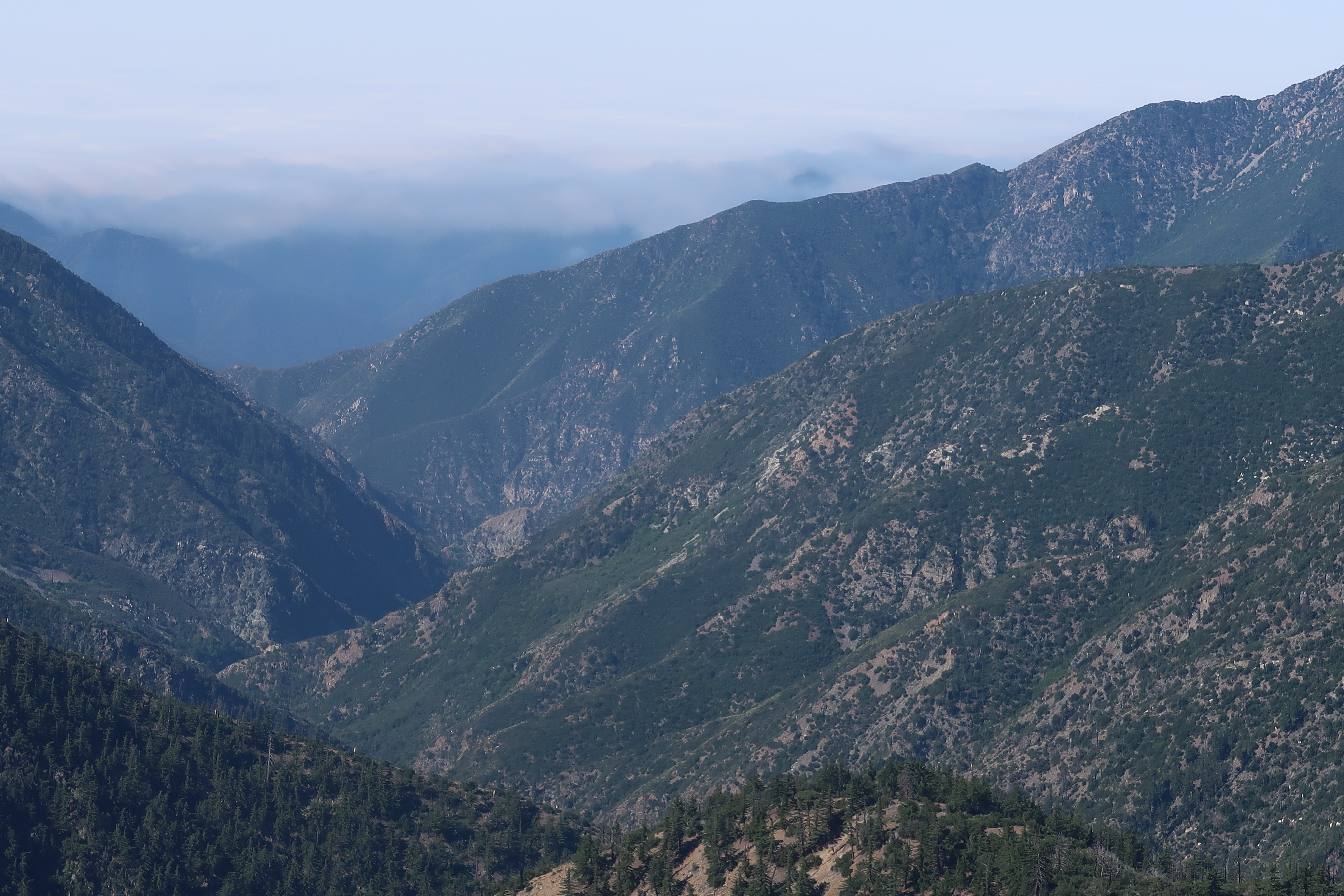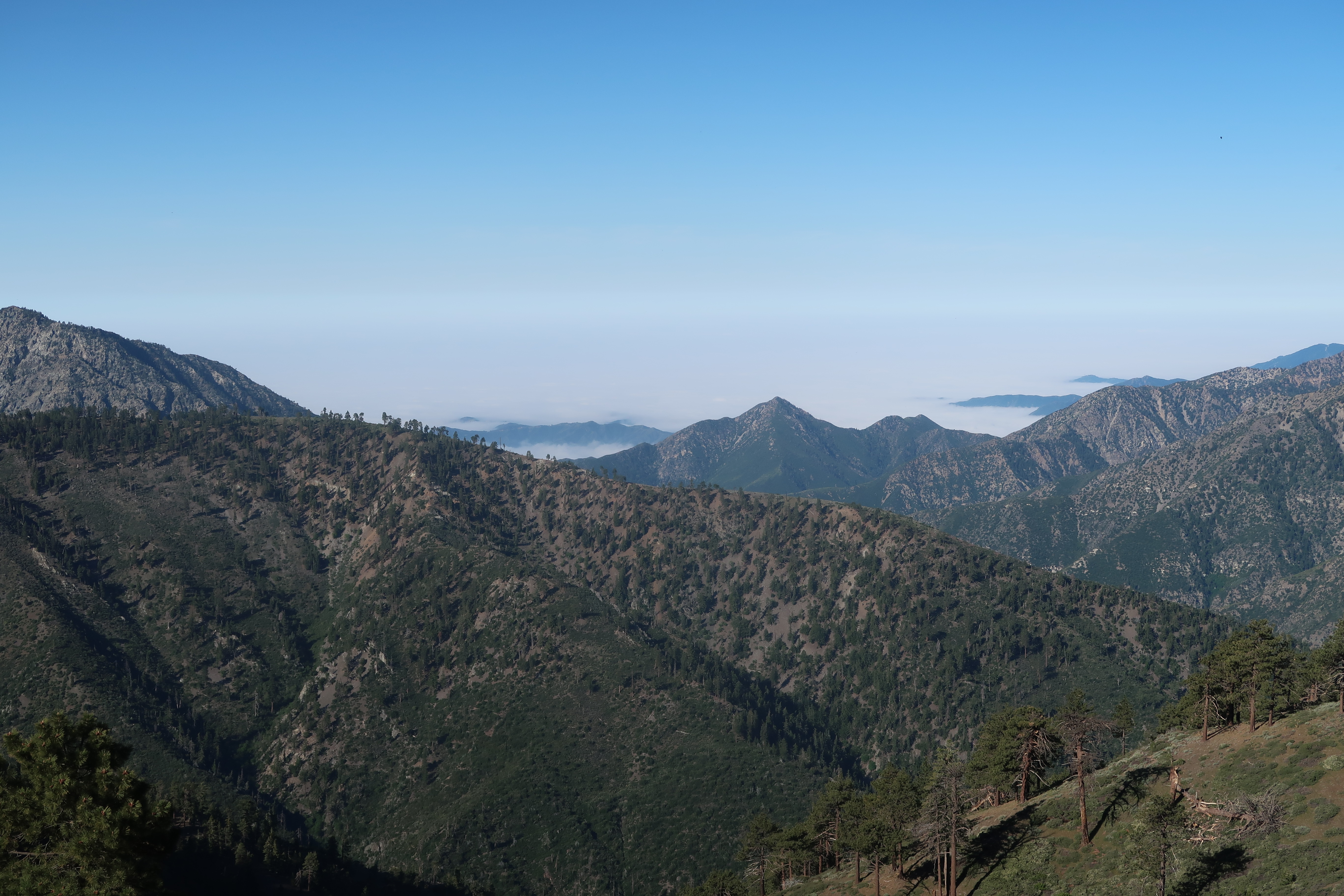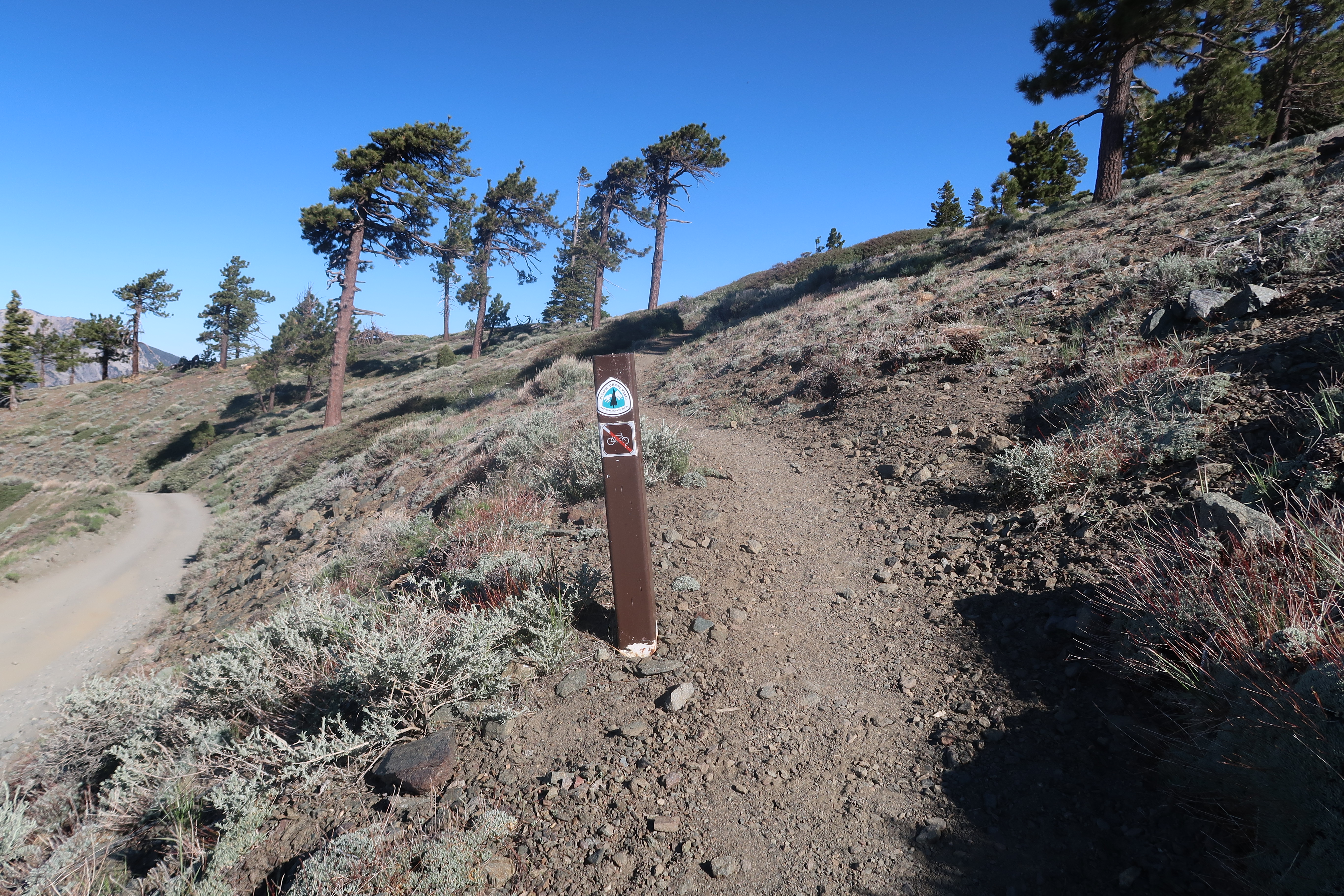 Die morgendliche Sonne durchflutete den Nadelwald mit ihrem gelb-orangenen Licht, während ich mich zurecht machte. So eine schöne Stimmung, um in den Tag zu starten. Kurz bevor ich losging, machte ich ein paar Dehnübungen. Während ich da so stand und mich verbog, näherte sich mir ein Mann. Er war kein Wanderer, sondern ist mit seinem Auto an den Platz herangefahren, um zu Zelten. Als er auf halbem Weg zu mir war, fragte er mich: „Wanna get a quick shot of Whiskey before heading out?“ und hob das Glas dabei vor sich. Ich lehnte dankend ab. Ich konnte jetzt keine Kopfschmerzen und schwummrige Sicht gebrauchen. Der Trail fordert meine einhundertprozentige Konzentration und außerdem trinke ich nicht. Er machte auf dem Absatz kehrt und kippte sich lachend das Gesöff in den Rachen. Schmunzelnd ging ich meines Weges.