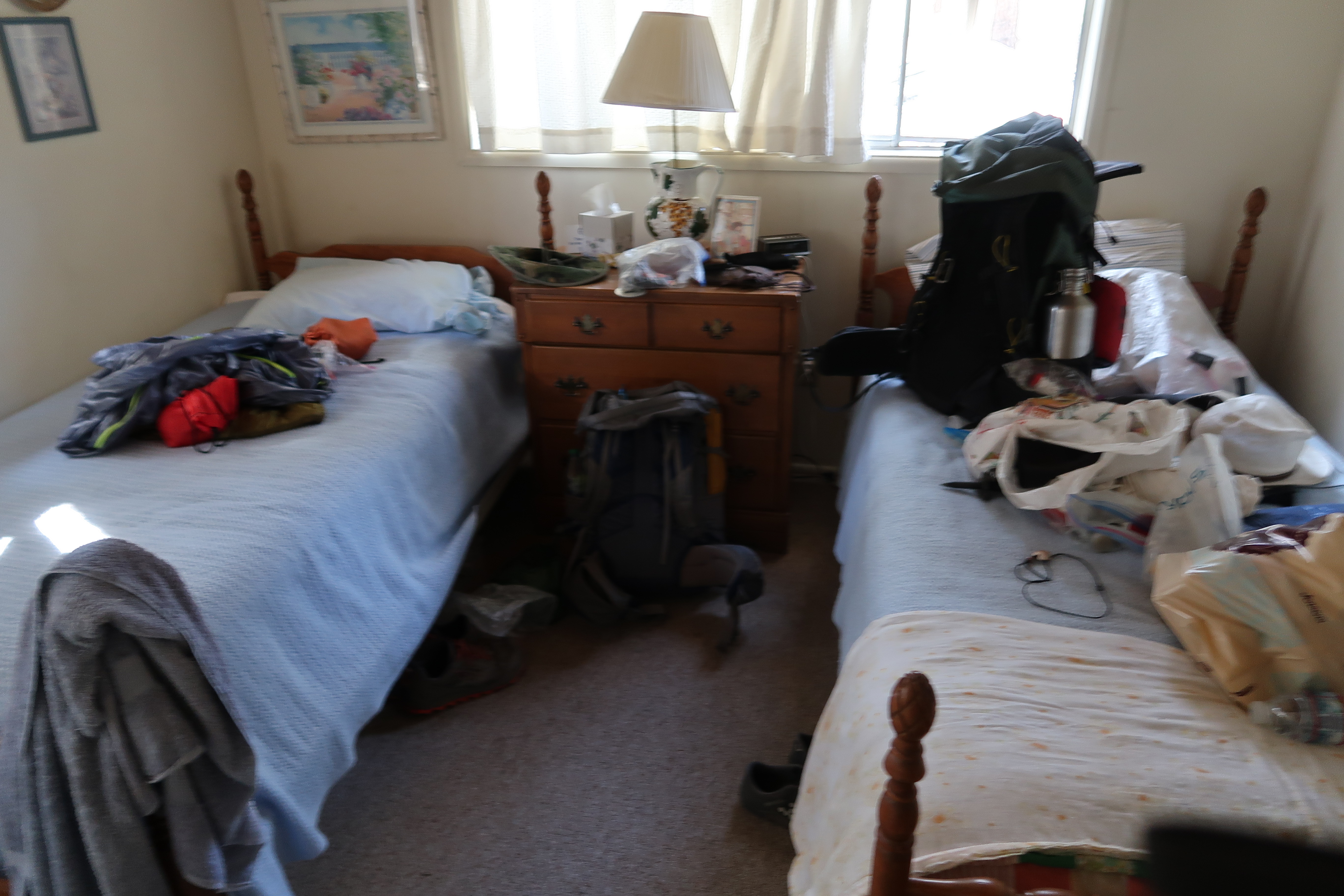Ich habe für uns vier ein Quartier versorgt. Es gab eine Liste mit Train Angel Familien, die Hiker aufnehmen. Ich rief ein paar an und schließlich rief mich ein älterer Herr namens Leroy zurück. Er holte uns nach einer Viertelstunde ab. Er und seine Frau bewohnen gemeinsam ein geräumiges Haus. Nach dem Auszug der fünf Kinder beschlossen sie, den verfügbaren Raum anderweitig zu nutzen. Und so wurde eine neue Trail Angel Familie geboren.