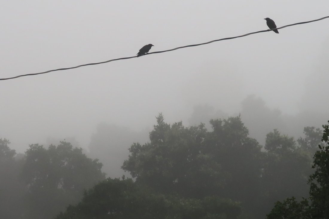 Das Wetter machte wieder einen auf seltsam. Die Luftfeuchtigkeit war sehr hoch und der frühe Morgen produzierte dichte Nebelschwaden. Zwei Krähen saßen auf einer Überlandleitung und starrten nach unten. Die Szene hätte aus einem Film stammen können.
