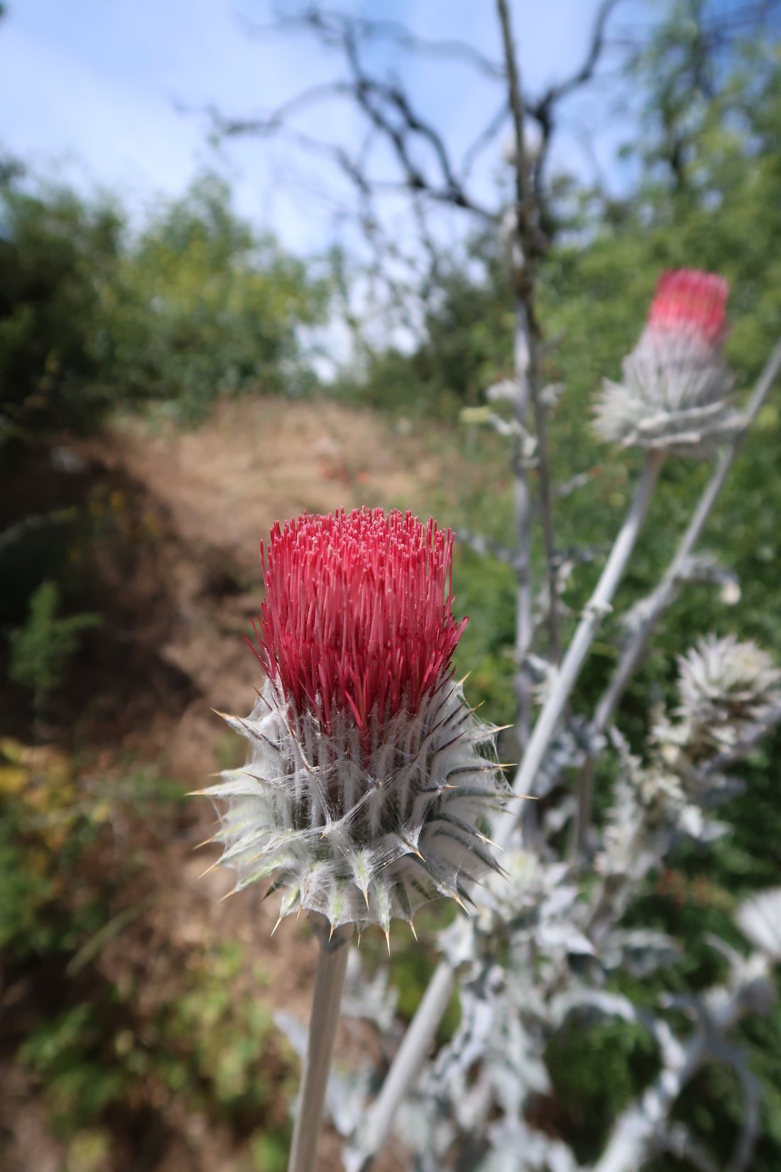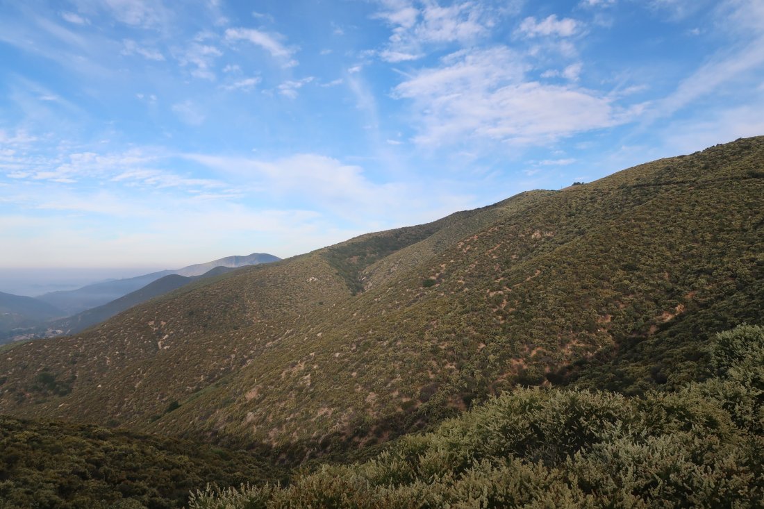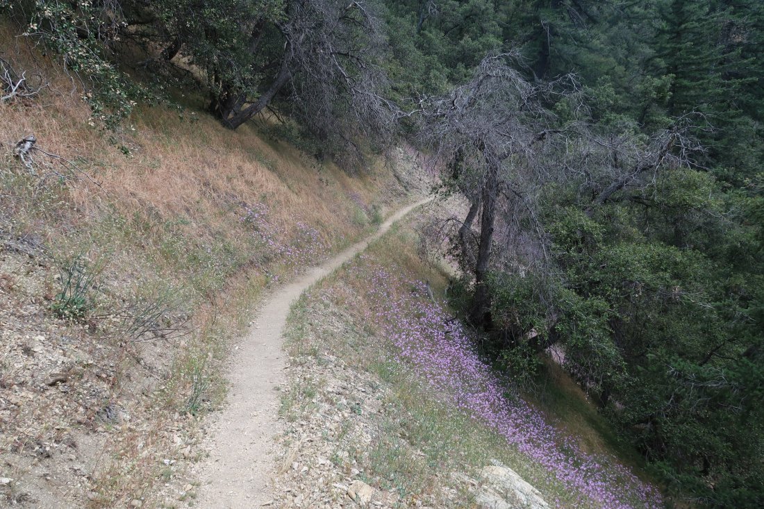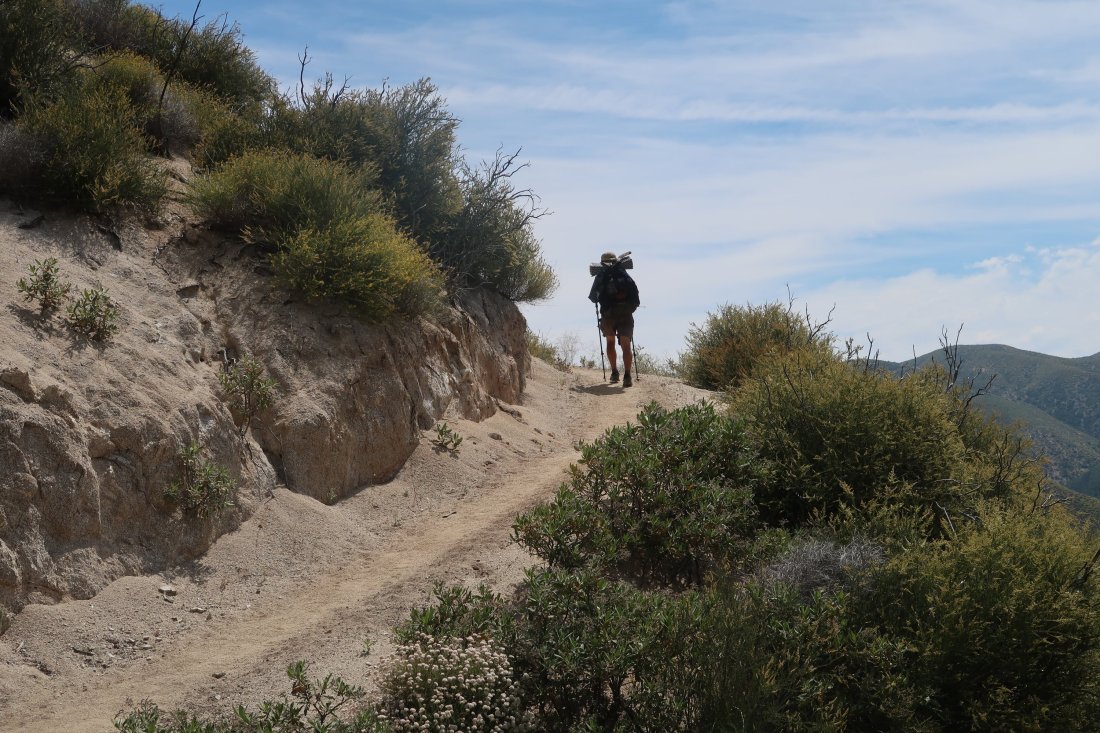 Nach einer Straßenüberquerung verlief der Trail steil nach oben. Bremsen gab es hier keine mehr, die Landschaft war zu trocken. Doch es gab eine kleine Quelle mit wohlschmeckendem Wasser. Und Höhlen. Ich sah cirka drei Stück in den Felswänden direkt am Weg. Wie ich später erfuhr, seien die Höhlen ehemalige Minen. Wir wollten aber nicht näher nachsehen, da wir befürchteten, ein Bär könnte in einem dieser Löcher schlafen.