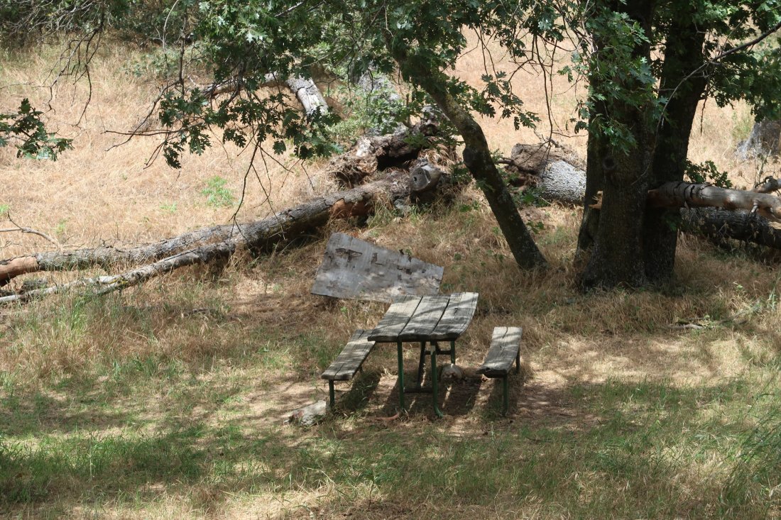 Die Mittagspause verbrachten wir an einem alten, heruntergekommenen Pfadfinderlager. Wir freuten uns dennoch über den Tisch samt Bänken unter Schatten spendenden Bäumen. Dort aßen wir gemütlich unser Mittagessen und hörten nebenbei etwas Johnny Cash. Die Musik passte tatsächlich sehr gut zu unserer Stimmung. Zwei Wilde, rastlos und immer unterwegs.