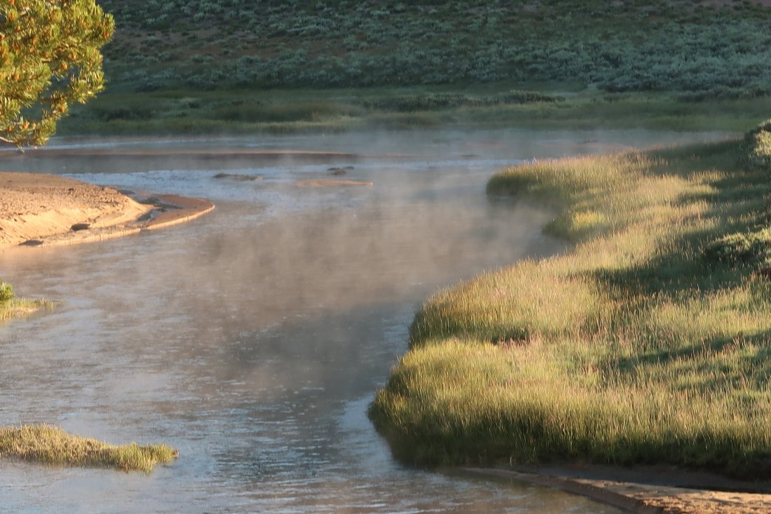 Ich traf wieder auf den Kern River, er schlängelte sich durch die grasbewachsene Ebene und reflektierte die Morgensonne. Nebel stieg von der Wasseroberfläche empor. Eine Holzbrücke spannte sich über ihn und darunter flogen dutzende Vögel hin und her und zwitscherten aufgeregt. Große Fische schwammen gegen die Strömung, vermutlich auf Futtersuche. Das alles beobachtete ich voller stiller Faszination.