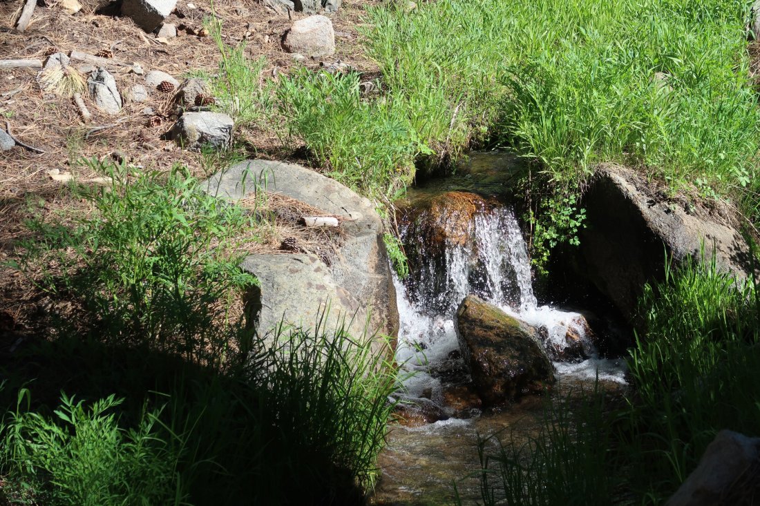 Nach einer großzügigen Mittagspause unter einem gewaltigen Baum traf ich einen netten Wanderer. Er erzählte mir, dass er aus Belgien stamme. Und so entwickelte sich eine Unterhaltung. Wir sprachen über einige Themen, wie: Amerika und Stereotypen, unser Abenteur, dass wir gemeinsam teilten und schließlich über Beziehungen. Er hat eine Freundin in Belgien, die sehnlichst auf ihn wartet und er wirkte glücklich über die Entscheidung, dass sie sich doch nicht vor der großen Reise trennten. Ich freute mich für ihn. Es ist ein wunderschönes Gefühl, wenn man vermisst wird und sich auf einen Menschen, der einem wichtig ist, freuen kann. Auf einer hellgrünen Wiese sahen wir ein großes pelziges Geschöpf. Etwa ein Murmeltier? Da war ich mir nicht ganz sicher. Kurz darauf gelangten wir zu einer Wasserstelle. Die Mücken umschwärmten mich und mir war klar, dass ich weiter wollte, bevor mich die Biester bei lebendigem Leib fraßen.