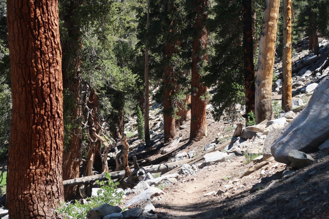 Dann ging es weiter. Vor mir lag ein harter Anstieg, doch die meiste Zeit folgte ich einem schattigen Flussverlauf. Überall gab es Mücken. Sie stachen mich sogar während des Gehens. Deshalb war an Pausen nicht zu denken. Das Gewicht des Rucksacks fühlte sich wie eine Tonne an. Schweißgebadet und außer Atem kam ich irgendwann an die höchste Stelle, bevor der Trail wieder abfiel.