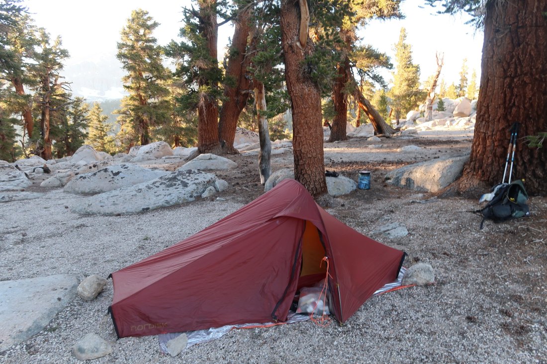 Mein Zelt schlug ich in Rekordgeschwindigkeit auf, da es so viele Mücken gab, dass ich dachte, dass sie mich blutleer saugen würden, wenn ich nicht schnell genug handeln sollte. Ich fühlte mich ein wenig einsam vor dem Einschlafen. Ich hörte ein wenig mein Hörbuch, um mich abzulenken. Doch morgen sollte meine erste Flussüberquerung auf mich zukommen. Daher wollte ich zeitig raus, um das zusätzliche Schmelzwasser zu vermeiden, was sich während des wärmer werdenden Tages bildet und die Ströme speist.