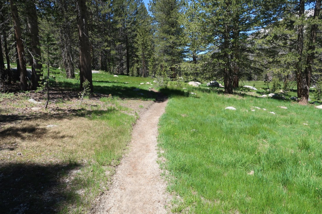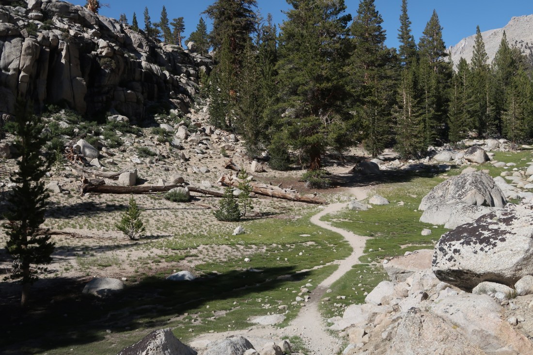 Etwas später ging ich wieder allein weiter. Als ich irgendwann zu meinem Zeltplatz gelangte, unterwegs traf ich nochmal die Zwei von vorhin, fiel mir auf, wie viel schwieriger sich doch die Planung im Gebirge gestaltete. Flussdurchquerungen werden am besten morgens durchgeführt, wenn ein reißender Strom normalerweise weniger Wasser führt, da die Schneeschmelze erst wenn es wärmer wird einsetzt. Hohe Pässe werden auch am besten früh bestiegen, solang der Schnee noch fest und begehbar ist. Und damit habe ich die perfekte Überleitung. Morgen hatte ich ein Mammutprojekt vor mir: den Forrester Pass, also den höchst begehbaren Pass auf dem Pacific Crest Trail. Dafür würde ich zeitig aufstehen müssen, denn der Schnee wartete nicht auf mich.