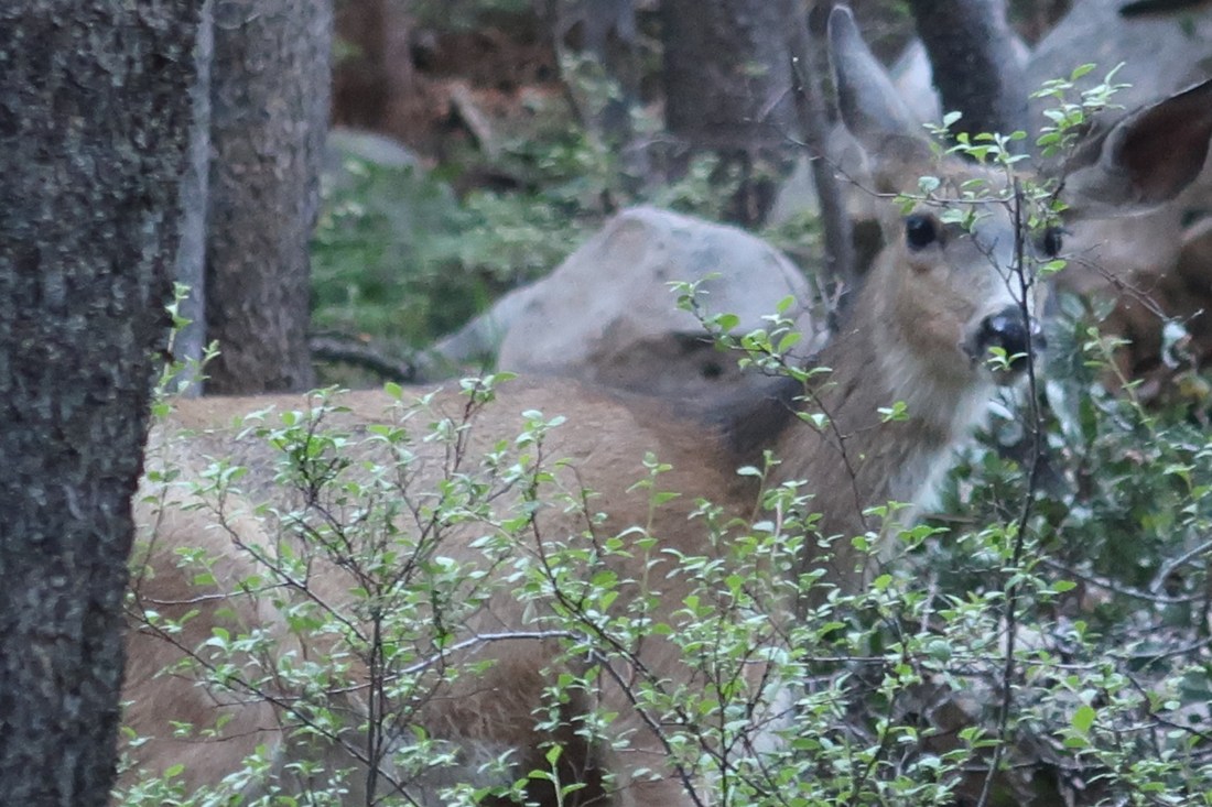 Wir sahen zwei oder drei Rehe auf unserem Weg in Richtung Gipfel. Sie sahen uns mit ihren großen schwarzen Augen interessiert und eindringlich an. Nach einer gewissen Zeit wurde der Weg so steil, dass meine Oberschenkel wie Feuer brannten und mir der Schweiß von den Haaren tropfte, doch es lagen noch etliche Meilen vor uns. Die Pausen hielten wir aufgrund der eintretenden Schneeschmelze relativ gering.