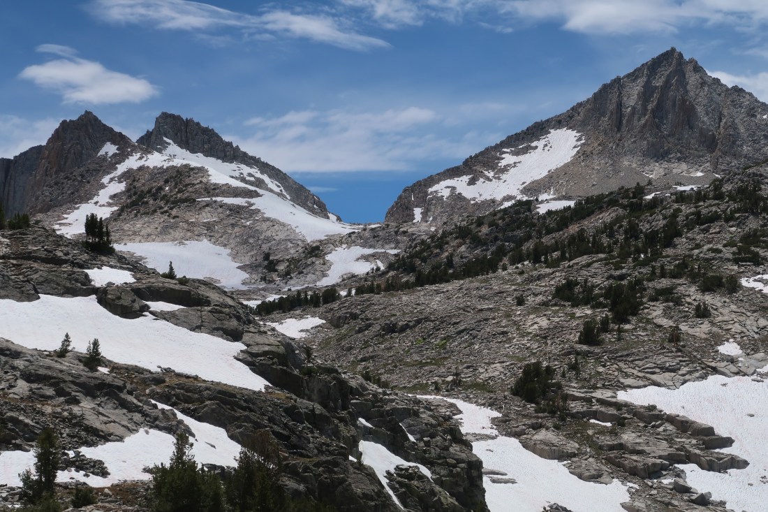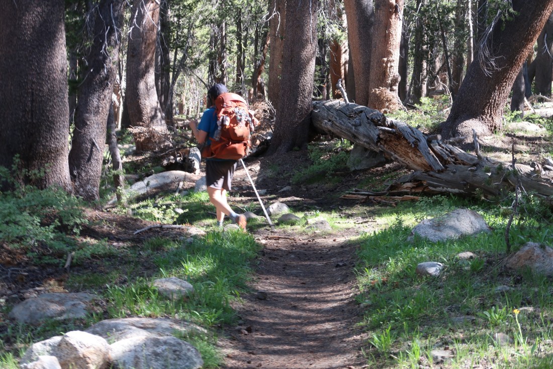 Als wir alle Mann soweit waren aufzubrechen, ging es für uns vom Resort aus über einen sehr steilen Pfad zurück zum PCT. Das strengte schon extrem an, doch als wir dann wieder auf dem eigentlichen Trail waren, ging der Spaß auch noch, begleitet von Mückenschwärmen, weiter. Ich bin mir nicht mehr ganz sicher, aber ich glaube wir erklommen den Seldon Pass.