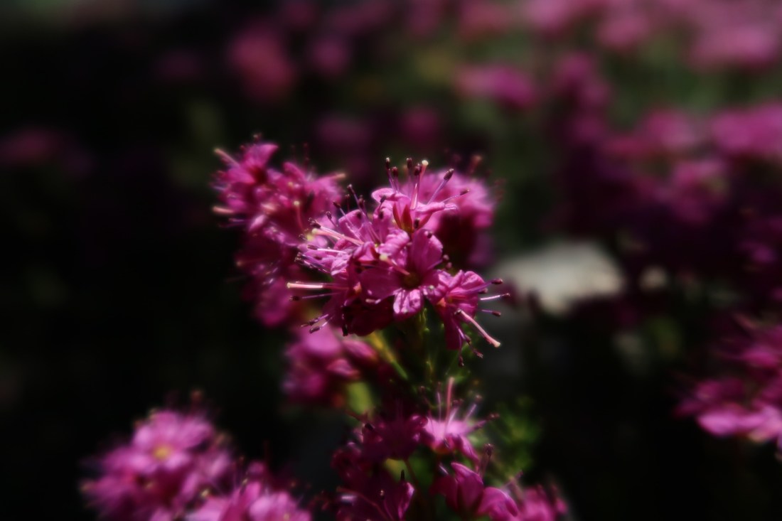 Unterwegs liefen wir an sehr schönen und klaren Bergseen vorbei. Leuchtend violette Blumen säumten unseren Weg hinauf. Darüber freuten sich auch die wilden Bienen besonders. Ab und an überquerten wir Flüsse oder Wasseransammlungen auf langen Ästen oder anderem Holz, dass manchmal etwas lose und wackelig dalag.