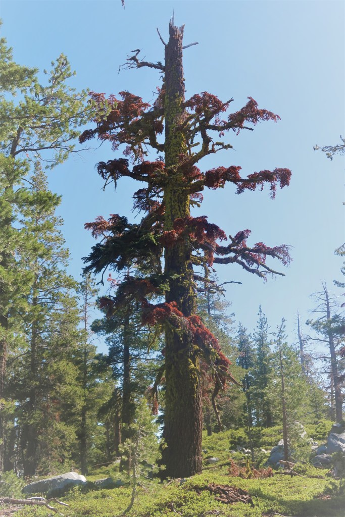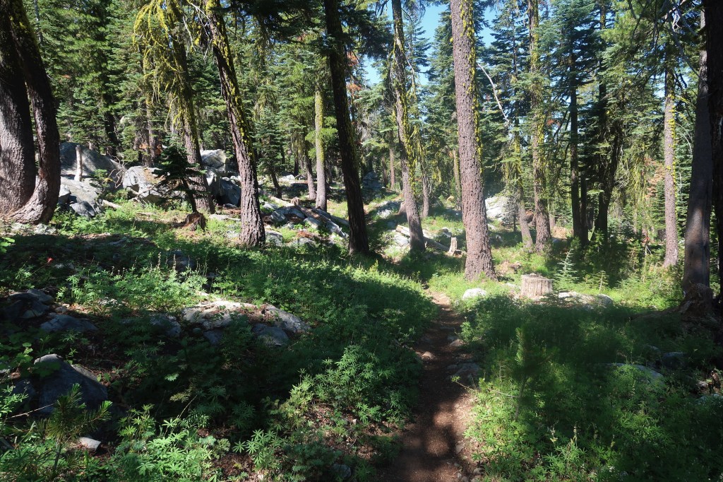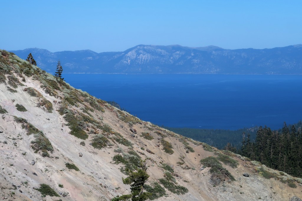 Es ging weiter durch noch mehr Wald. Und durch Meere aus Wildblumen, die wie verrückt blühten. Insekten flogen eifrig umher und saugten den Nektar aus den bunt leuchtenden Pflanzen. Unzählige Schmetterlinge, mindestens vier unterschiedliche Arten konnte ich ausmachen, beteiligten sich an dem Spektakel. Gegen Abend klärte sich mein Blick für eine kurze Zeit. Ich konnte in der Ferne den Lake Tahoe sehen. Eine Monstrosität von einem See. Fast wie die Ausläufer eines Meeres, oder wie ein norwegischer Fjord, lag er stahlblau dort unten und schlummerte.