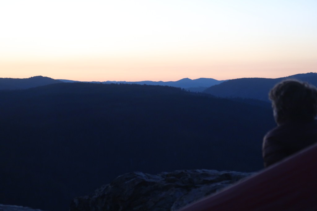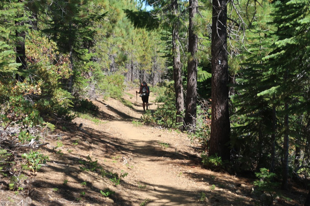 Da wir uns wieder im grünen Tunnel befanden, vor und hinter uns nichts als Bäume, hielt sich meine Motivation sehr in Grenzen. Um ehrlich zu sein hatte ich Lust mich hinzusetzen und erst einmal eine lange Zeit lang gar nichts zu tun. In solchen Momenten hörte ich gerne Hörbücher, doch ich hatte mir schon alle angehört, die sich auf meinem Handy befanden und hier gab es nur unzureichende, bis nicht existente Internetverbindung. Daher kreisten meine Gedanken wild umher, was manchmal sehr anstrengend sein konnte. Ich dachte viel über die letzten Monate nach und rief mir nochmal ins Gedächtnis, warum ich den PCT laufe. Manchmal kann Zeit zum Nachdenken helfen. Trotzdem – dieser endlose Wald war demoralisierend. Ich schien aus diesem Irrgarten nicht mehr herauszukommen.