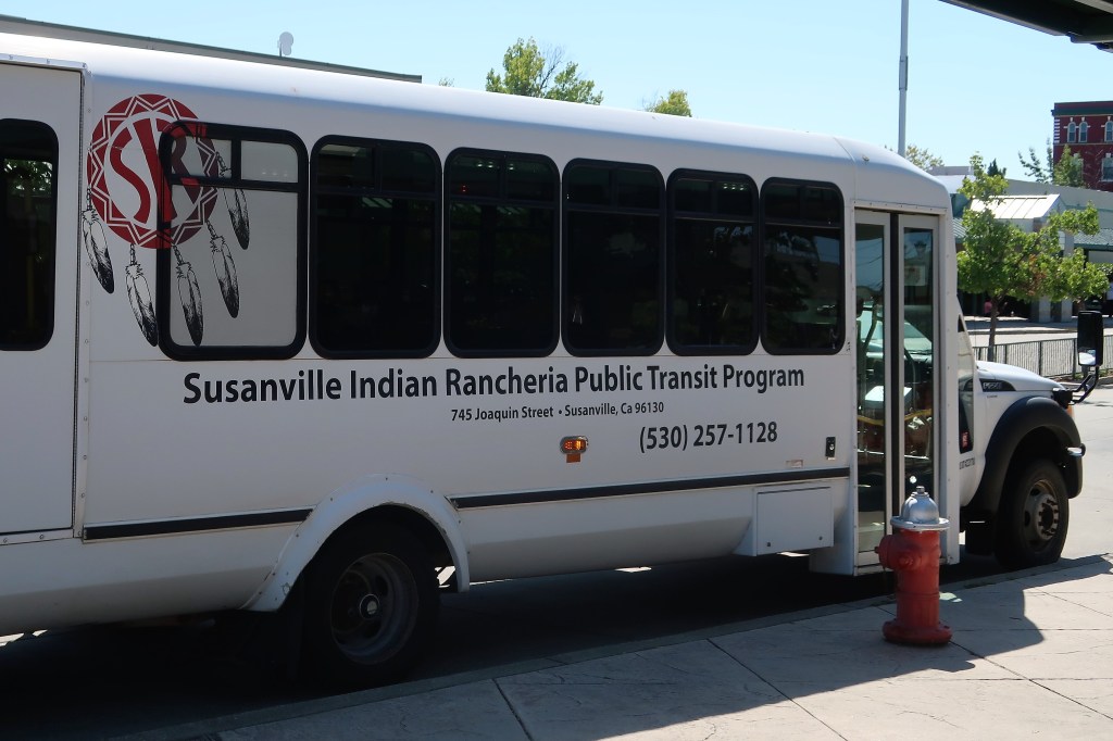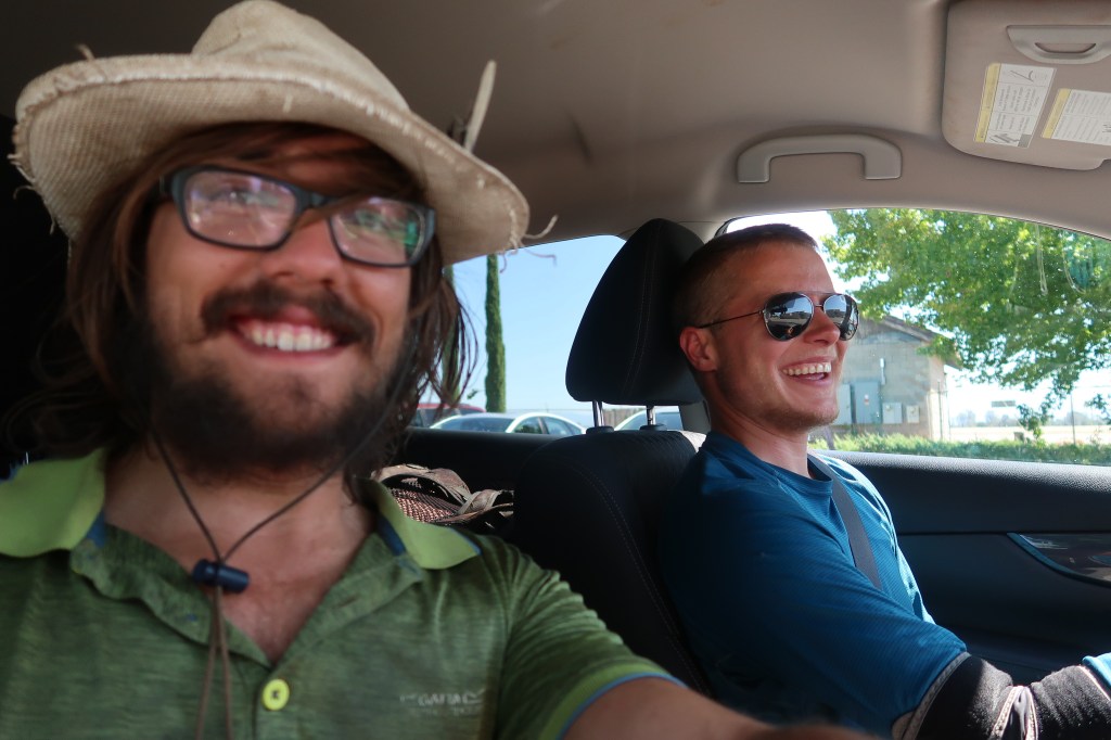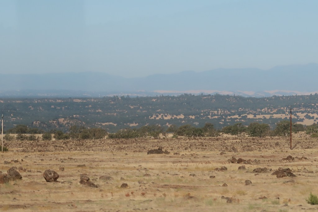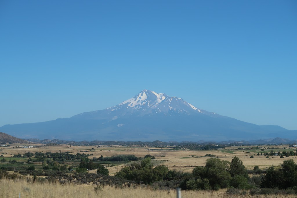 Wir nahmen den ersten Bus nach Redding. Die Straße führte uns aus dem Wald immer weiter abwärts ins Tal. Die Temperaturen kletterten und kletterten. Die Sonne brutzelte die Kabine durch. Selbst mit der Klimaanlage wurde es irgendwann unangenehm. Draußen nichts als Steppe, gesprenkelt mit kargen Büschen und Steinen. Die Berge tanzten in der flimmernden Luft.