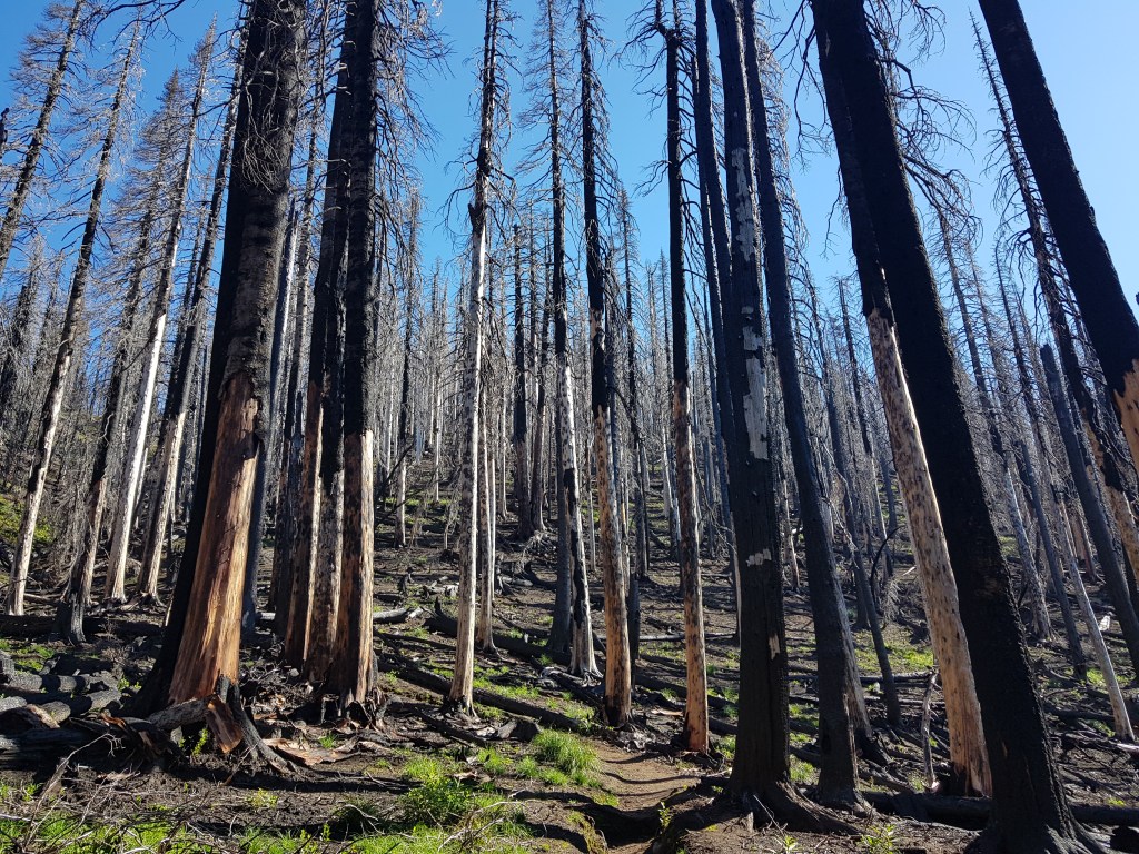 Ich war noch nicht weit gekommen, da traf ich einen alten Freund wieder. Es war Nathan! Er kam mir aus der anderen Richtung entgegen. Wir freuten uns riesig. Es war mehr als einen Monat, vielleicht sogar fast zwei Monate her, seitdem wir uns das letzte mal sahen. Er war vor ein paar Wochen an die kanadische Grenze gefahren und lief nun südwärts, um seinen Trail komplett zu beenden. Wir unterhielten uns eine Zeitlang und machten uns dann wieder auf die Socken. Happy Trails Nathan!