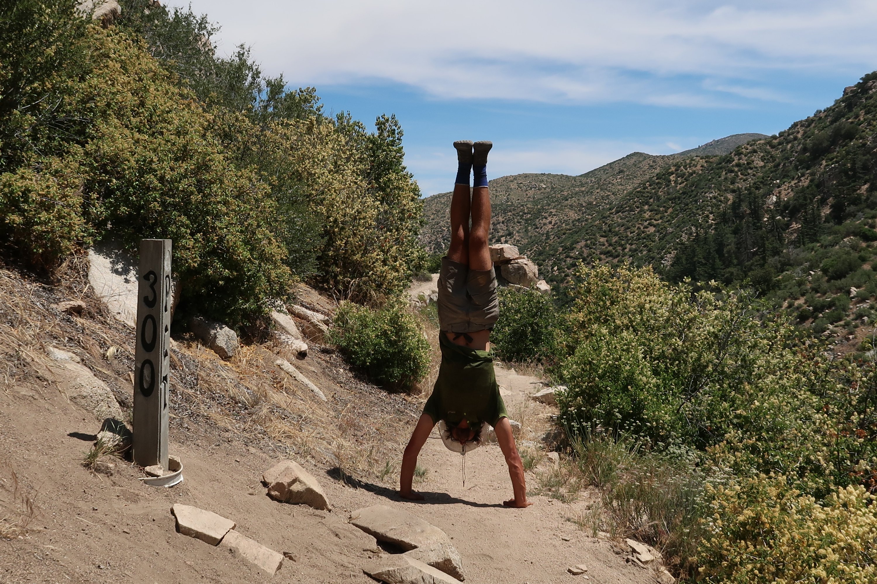 Tag 38, Km 739Vasquez Rocks, Drehort Star Wars, Tag 37, Km 724Bühne im KOA, einem großen Zeltplatz, Tag 36, Km 710Tag 35, Km 687400 Meilen! Tag 34, Km 640Tag 33, Km 611Spitze vom Mount Baden-Powell, Tag 32, Km 604 (einen Tag in Wrightwood verbracht)Ganz kurz vor Wrightwood, Tag 30, Km 585Guffy Campground, kurz vor Wrightwood, Tag 29, Km 582Silverwood Lake am Morgen, Tag 28, Km 522Hanstand im Fluss, Tag 27, Km 508Tag 26, Km 480Tag 25, Km 454Back on Trail, Tag 24, Km 440Heute leider nicht mehr auf dem Trail geschafft, daher in Big Bear, Tag 22, Km 425Irgendein Zeltplatz, Tag 21, Km 410Zeltplatz im Brandgebiet, Tag 20, Km 382Eine Challenge ist eine Challenge :), Tag 19, Km 355Kurz nach Cabazon, Tag 18, Km 336Water Faucet kurz vor Cabazon, Tag 17, Km 329Zeltplatz in den Bergen, Tag 16 (2 Tage ausgeruht in Idyllwild), Km 288Spitler Trail Junction, Tag 13, Km 270Tag 12, Km 249Auf dem Trail, Tag 11, Km 214Kalt kalt und nochmals kalt. Tag 10, Km 201Fast vergessen heute 🙂 Tag 9, Km 185. Thanks for helping me guys! Tag 8, Km 171, Eagle RockTag 7 (Tag 6 nicht auf dem Trail gewesen), Km 138, Nähe Grapevine MountainScissors Crossing. Tag 5. Km 124. Kurz vor dem Trampen nach Julian.In der Nähe von Garnit Mountain, Zelplatz. Km 90. Langsam bemerke ich einen leichten Rechtsdrall bei meinen Handständen. 😀In Mount Laguna, Tag 3, Km 66Kurz noch nen Handstand an dem Fluss gemacht. Tag 2, Km 40.Leider bisschen schief geworden 🙂 Tag 1, Km 0, mexikanische GrenzeSo ungefähr 🙂 Km -10.000 ca in Berlin. Nur ein kleiner Vorgeschmack
